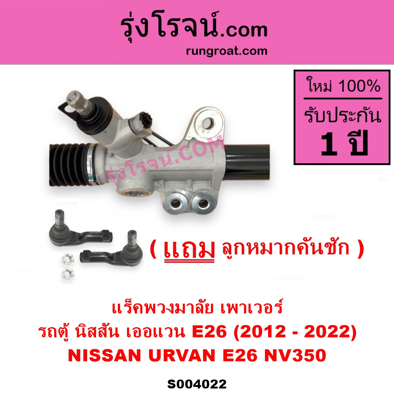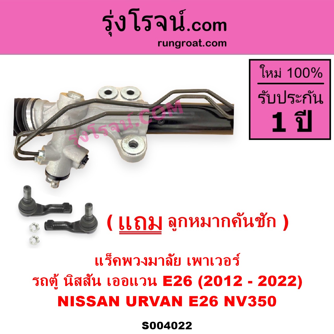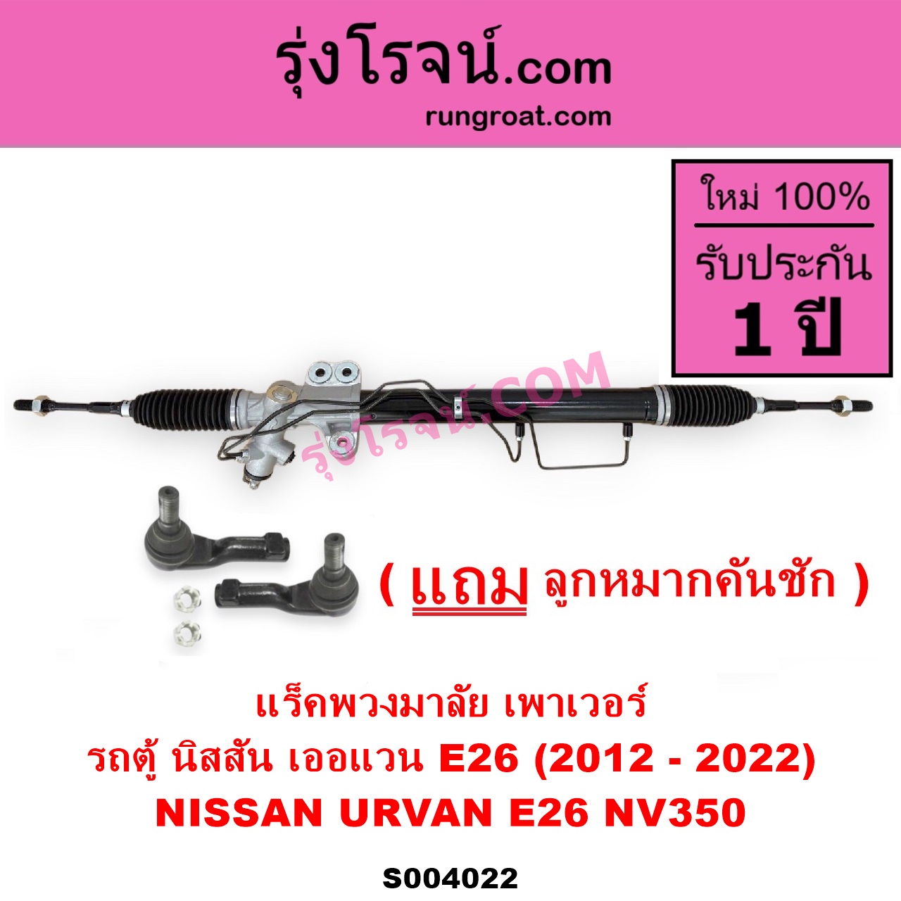 | S004022 | แร็คพวงมาลัย (แร็คเพาเวอร์) | NISSAN (นิสสัน) / URVAN (เออแวน E26 2012 – 2022) (NV350) | เพาเวอร์ | ไต้หวัน (ใหม่) |