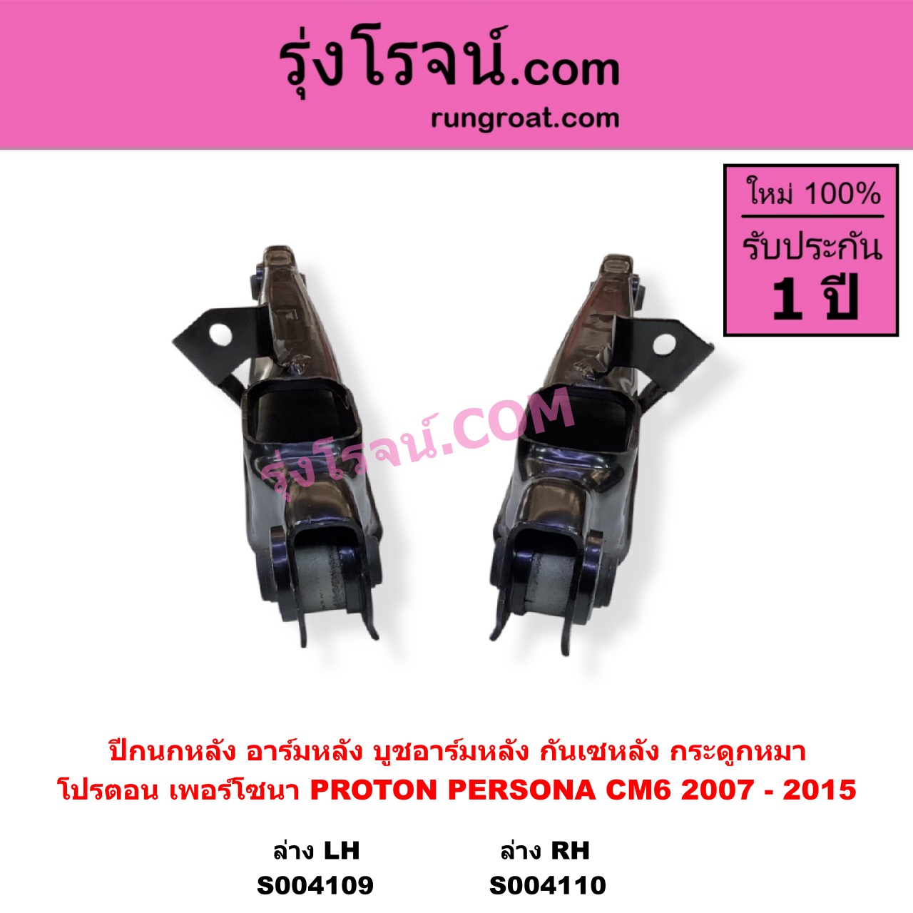 | S004109 | ปีกนกหลัง, อาร์มหลัง, บูชอาร์มหลัง, กันเซหลัง, กระดูกหมา | PROTON (โปรตอน) / PERSONA (เพอร์โซนา) (CM6 2007 – 2015) | ล่าง LH | ไต้หวัน (ใหม่) |