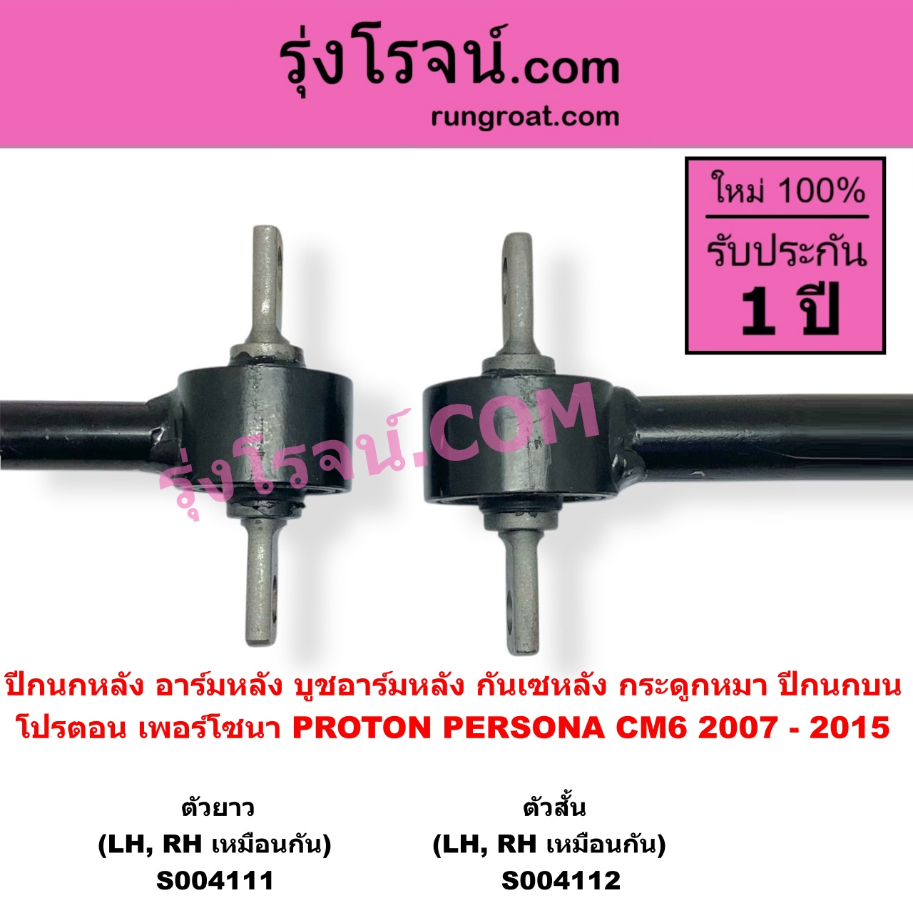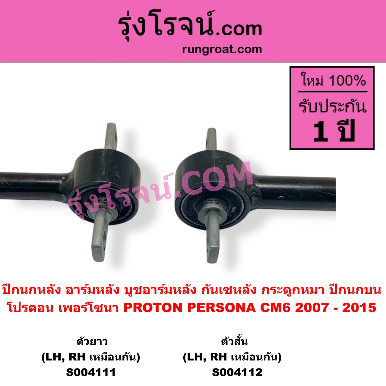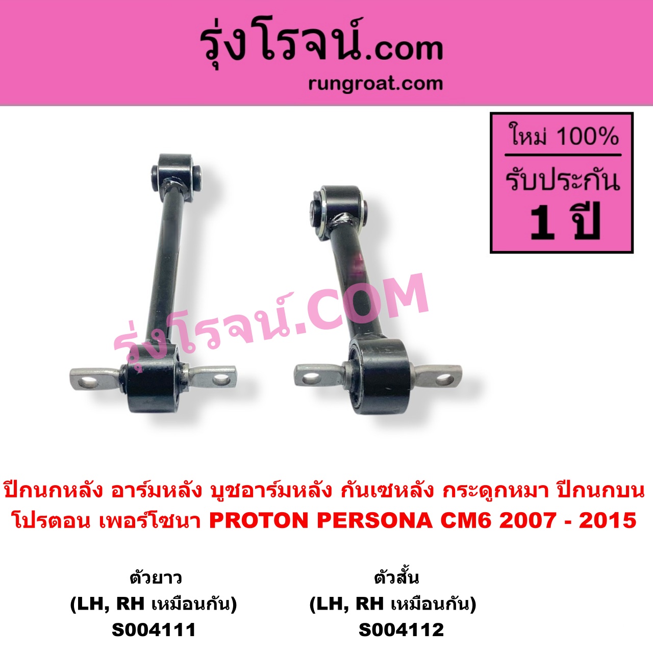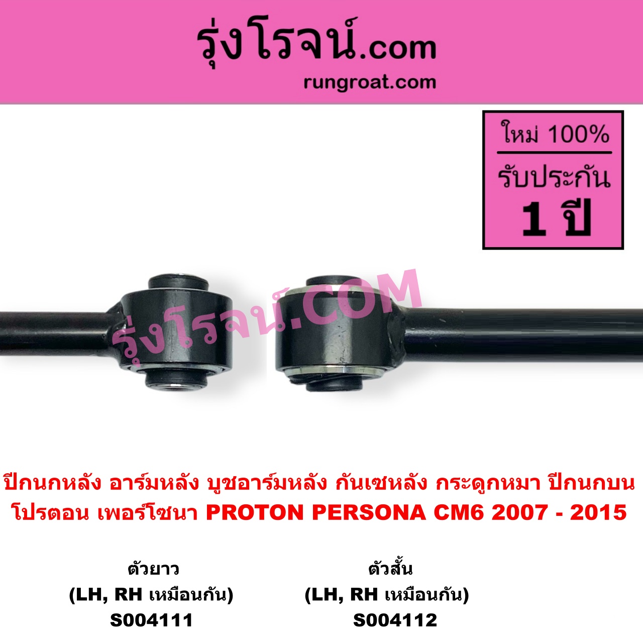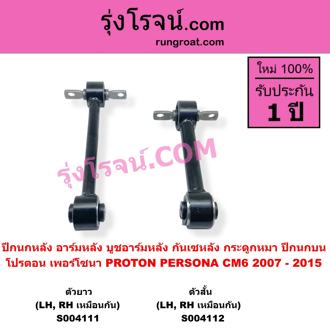 | S004112 | ปีกนกหลัง, อาร์มหลัง, บูชอาร์มหลัง, กันเซหลัง, กระดูกหมา | PROTON (โปรตอน) / PERSONA (เพอร์โซนา) (CM6 2007 – 2015) | ตัวสั้น (บน LH, RH เหมือนกัน) | ไต้หวัน (ใหม่) |