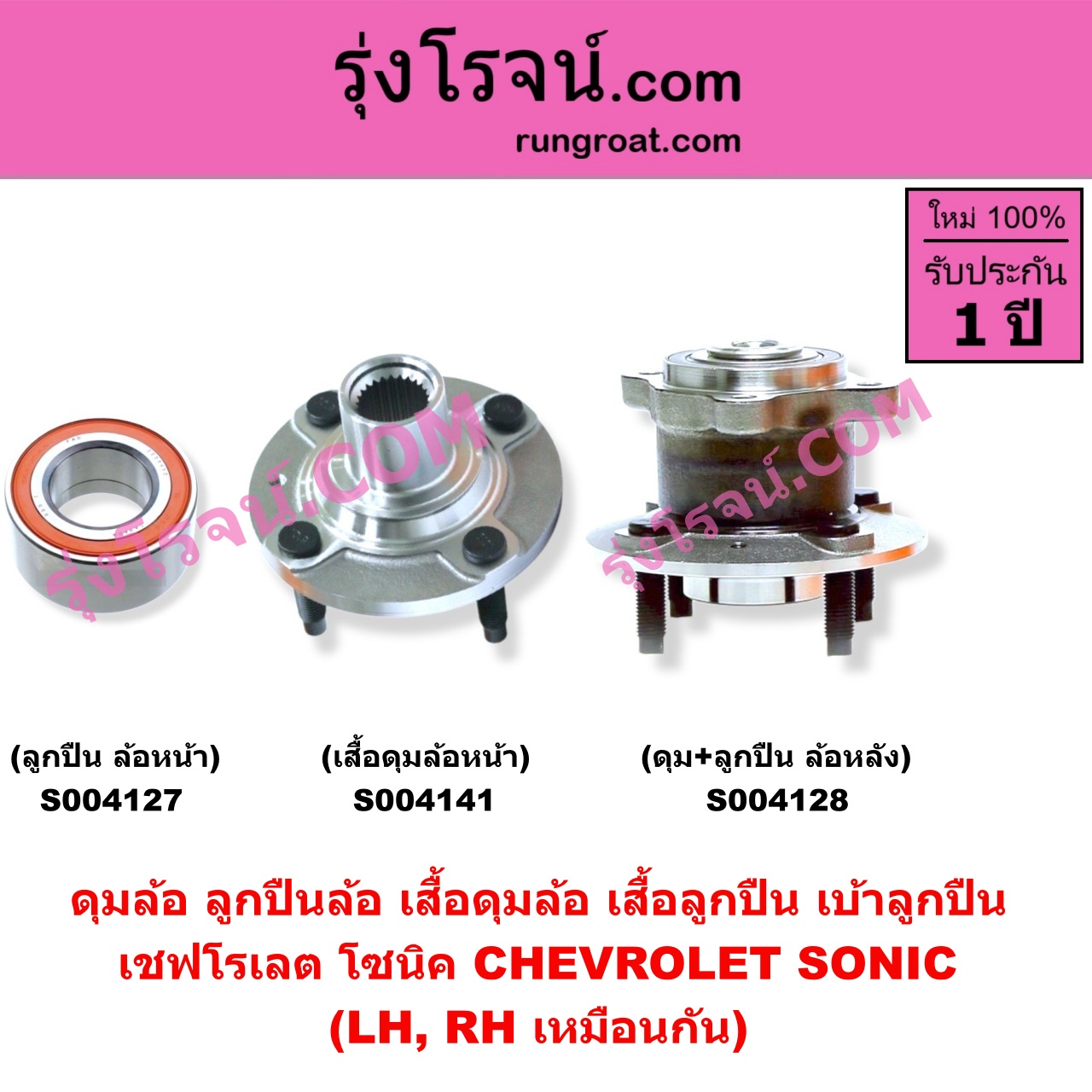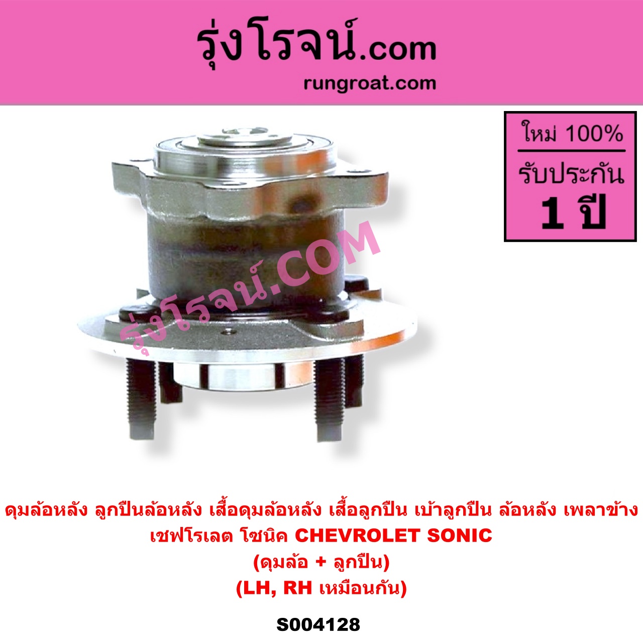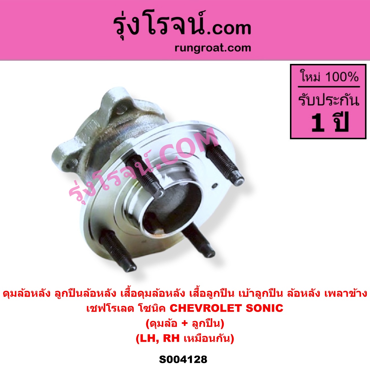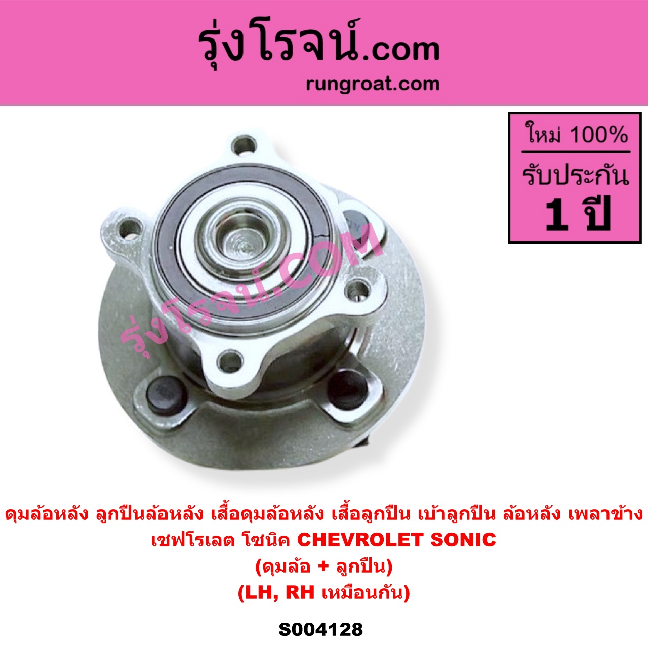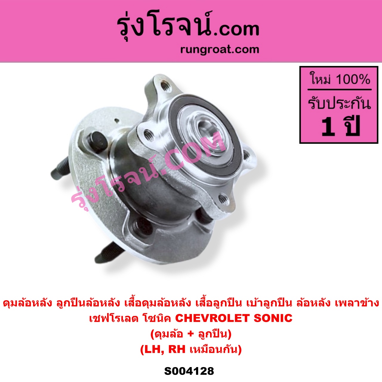 | S004128 | ดุมล้อหลัง (ลูกปืนล้อหลัง, เสื้อดุมล้อหลัง, เสื้อลูกปืน เบ้าลูกปืน ล้อหลัง เพลาข้าง) | CHEVROLET (เชฟโรเลต) / SONIC (โซนิค 1.4 1.6) | (เฉพาะ ดุม+ลูกปืน) ABS LH, RH | ไต้หวัน (ใหม่) |
