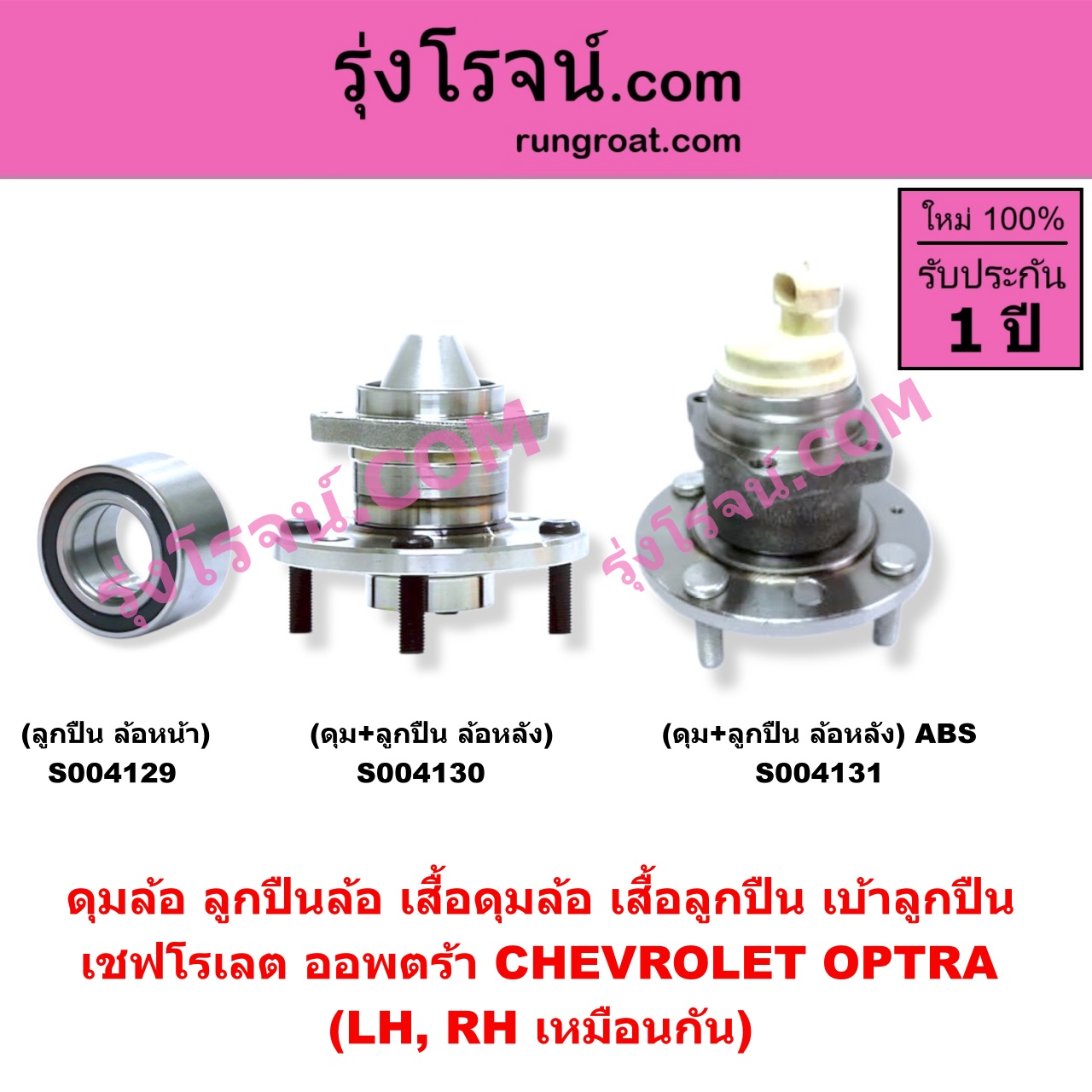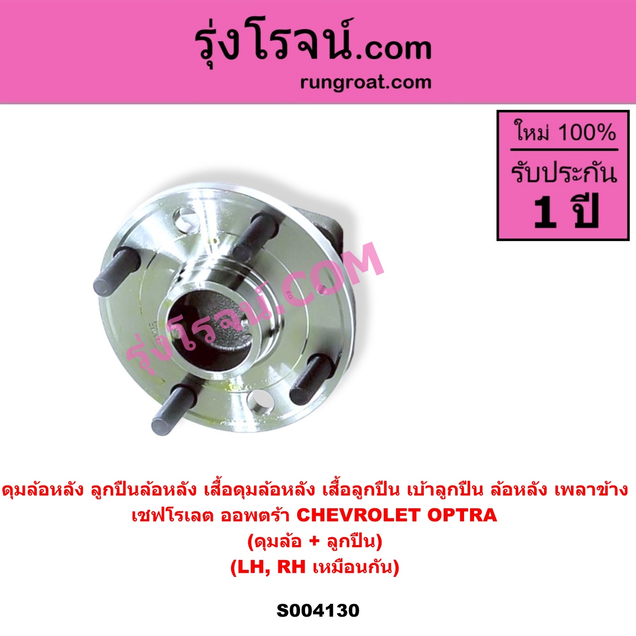 | S004130 | ดุมล้อหลัง (ลูกปืนล้อหลัง, เสื้อดุมล้อหลัง, เสื้อลูกปืน เบ้าลูกปืน ล้อหลัง เพลาข้าง) | CHEVROLET (เชฟโรเลต) / OPTRA (ออพตร้า ออฟตร้า ออฟต้า 2003 – 2013) | (เฉพาะ ดุม+ลูกปืน) LH, RH | ไต้หวัน (ใหม่) |