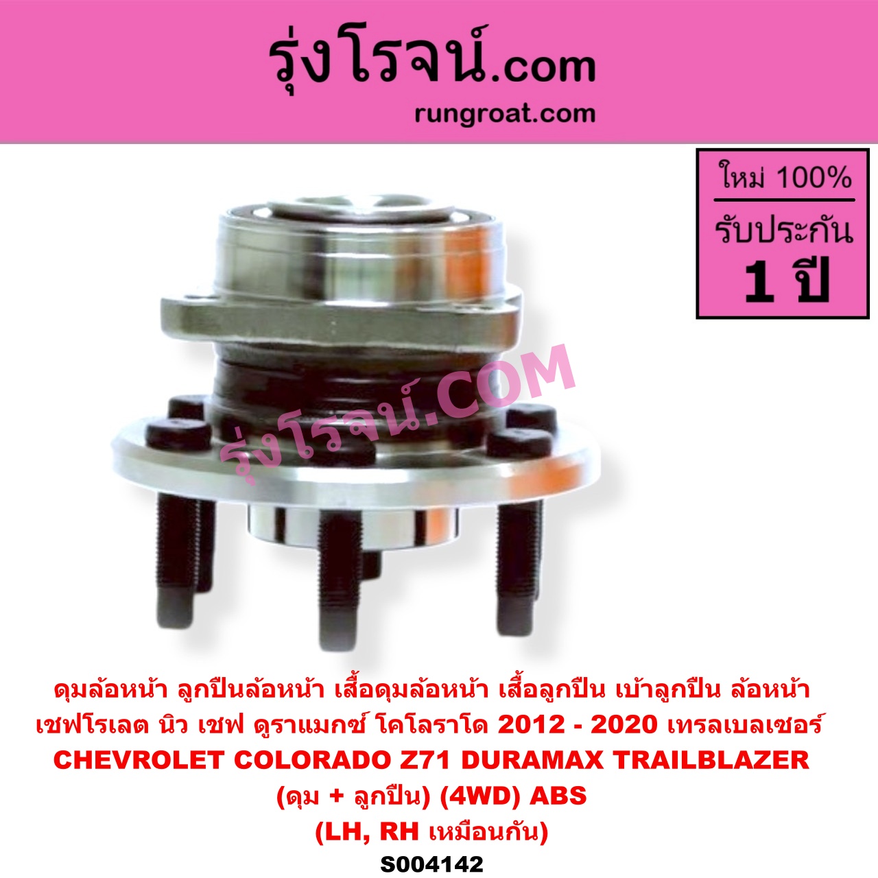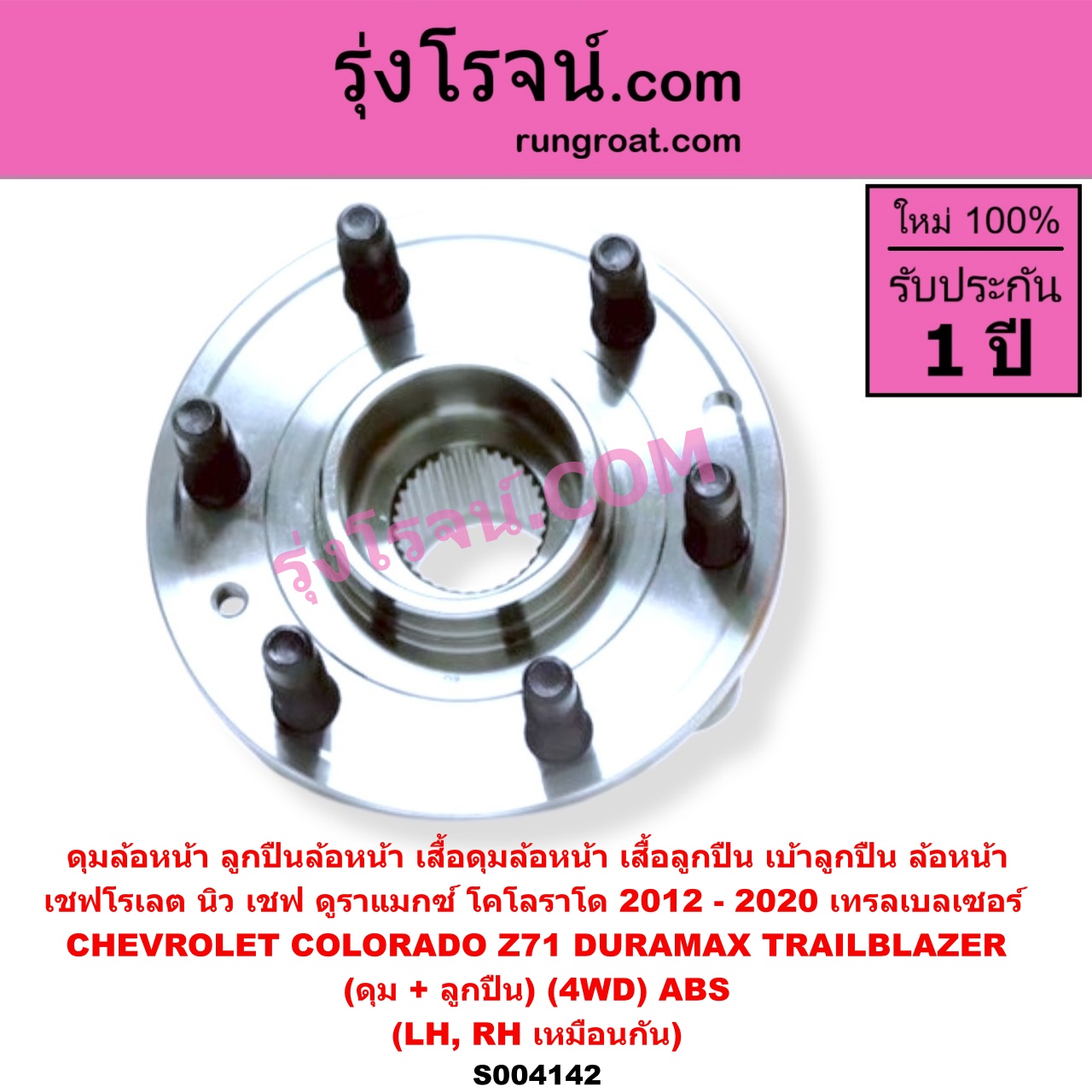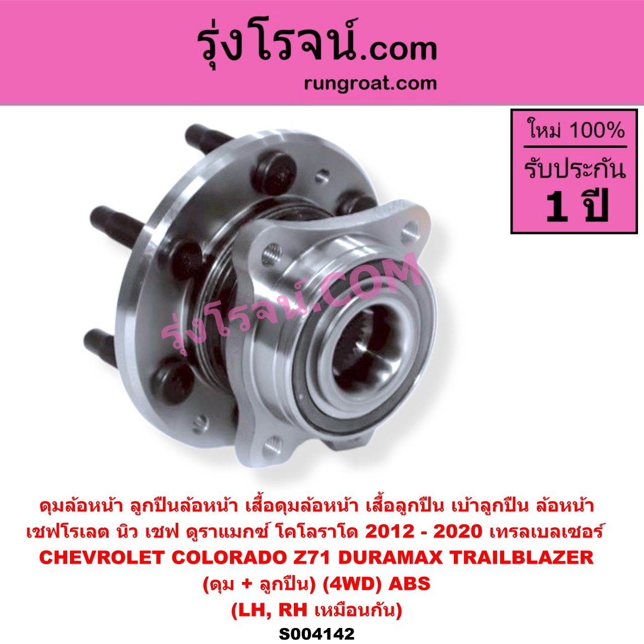 | S004142 | ดุมล้อหน้า (ลูกปืนล้อหน้า, เสื้อดุมล้อหน้า, เสื้อลูกปืน เบ้าลูกปืน ล้อหน้า) | CHEVROLET (เชฟโรเลต) / COLORADO (โคโลราโด 2012 – 2020) (นิว เชฟ ดูราแมกซ์, Z71, DURAMAX) , CHEVROLET (เชฟโรเลต) / TRAILBLAZER (เทรลเบลเซอร์ 2013 – 2020) |