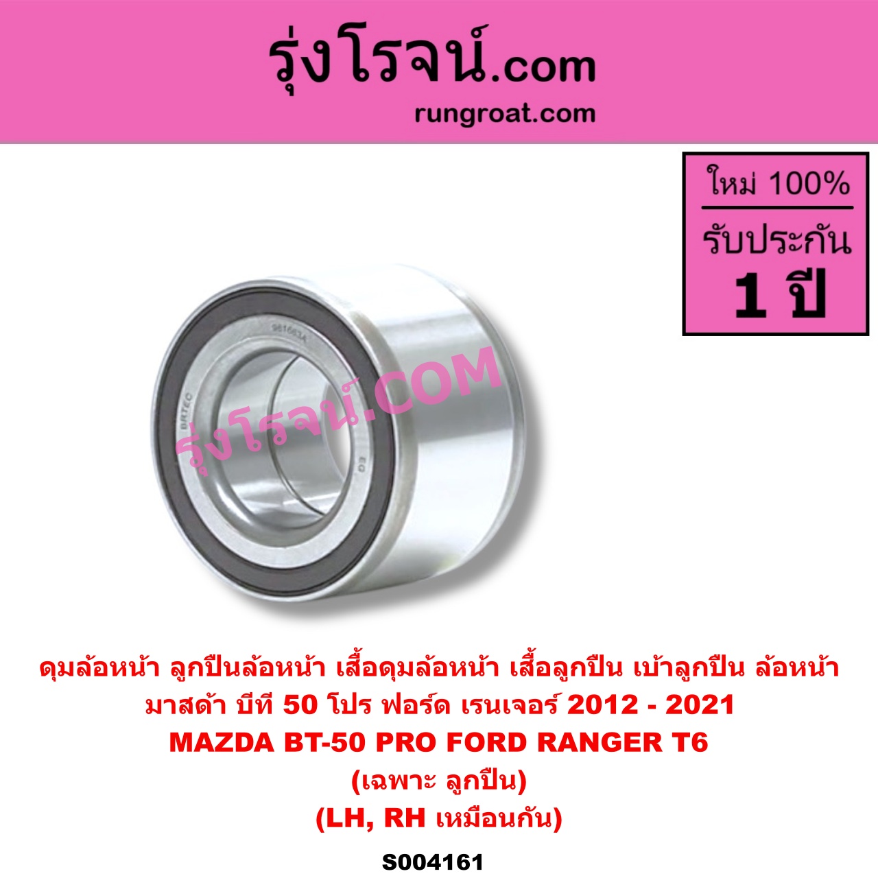 | S004161 | ดุมล้อหน้า (ลูกปืนล้อหน้า, เสื้อดุมล้อหน้า, เสื้อลูกปืน เบ้าลูกปืน ล้อหน้า) | FORD (ฟอร์ด) / EVEREST (เอเวอเรสต์ 2015 – 2021) (T6 T7 รุ่น 3) , FORD (ฟอร์ด) / RANGER (เรนเจอร์ T6 T7 2012 – 2021) (ไวล์ดแทรค แร็ปเตอร์ WILD TRAK RAPTOR) , MAZDA (มาสด้า) / BT-50 PRO (บีที 50 โปร 2012 – 2020) |