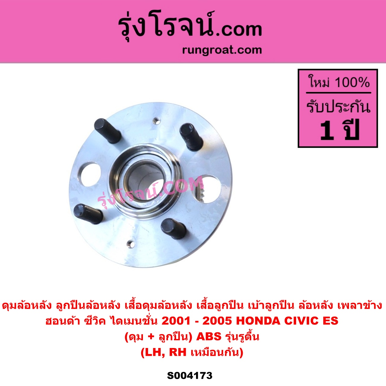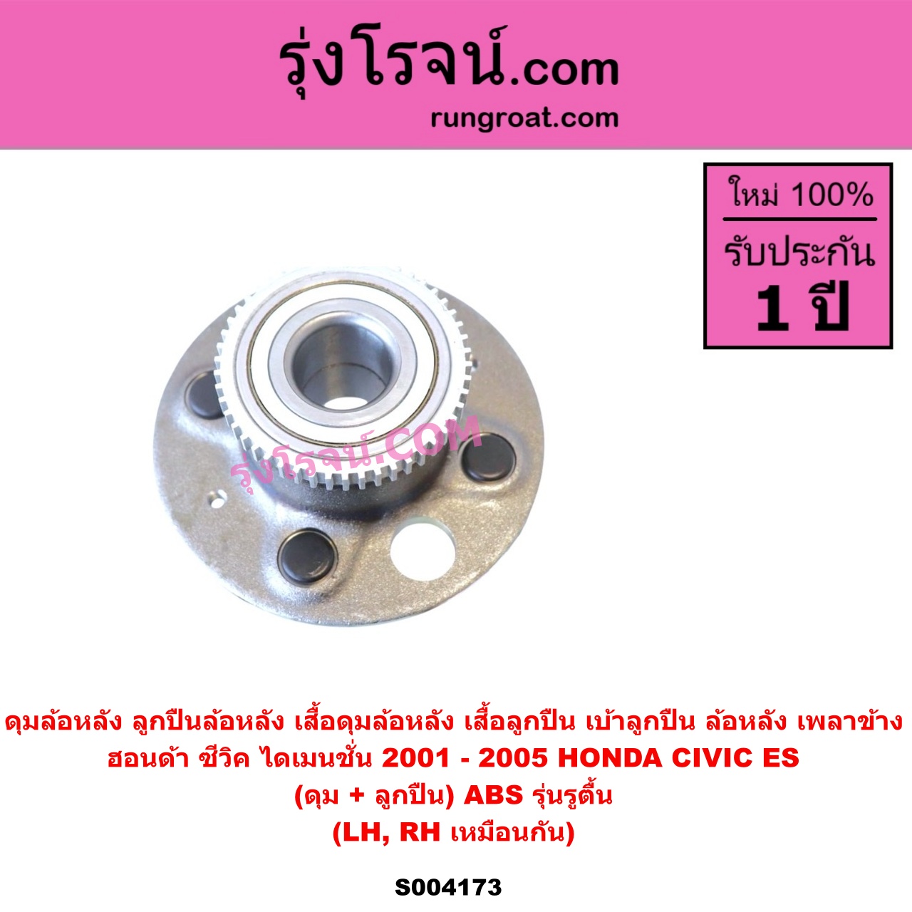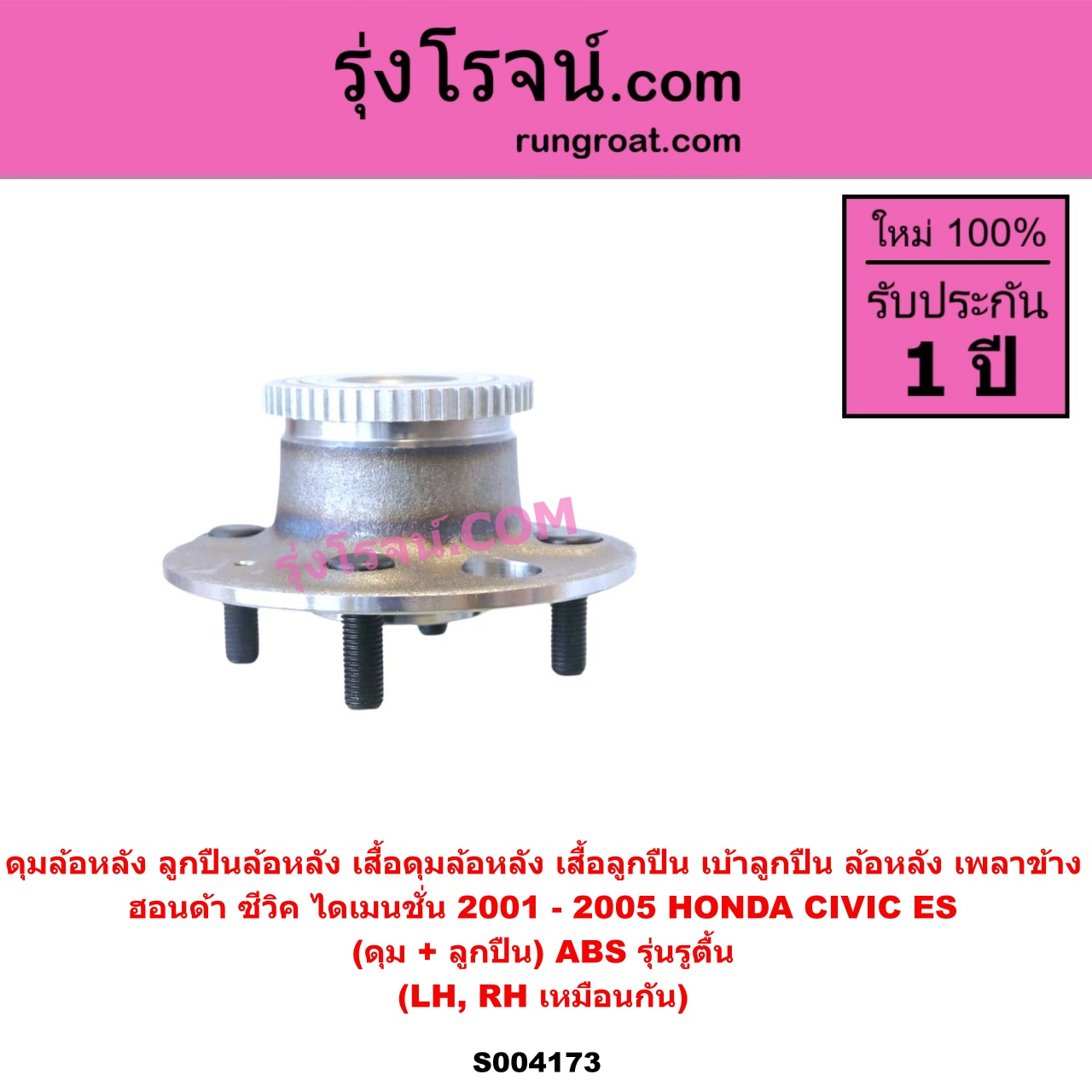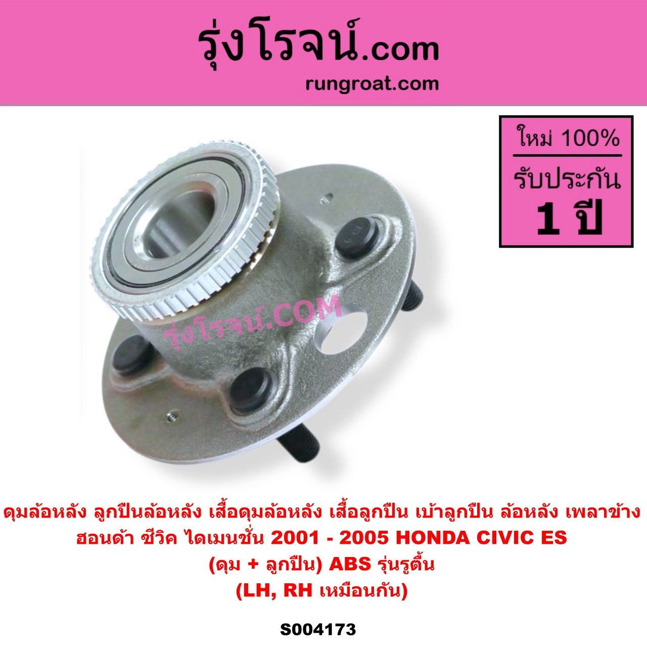 S004173 ดุมล้อหลัง ลูกปืนล้อหลัง เสื้อดุมล้อหลัง เสื้อลูกปืน เบ้าลูกปืน ล้อหลัง เพลาข้าง HONDA ฮอนด้า CIVIC ซีวิค 2001 – 2005 ไดเมนชั่น ES ดุม + ลูกปืน ABS รุ่นรูตื้น LH RH