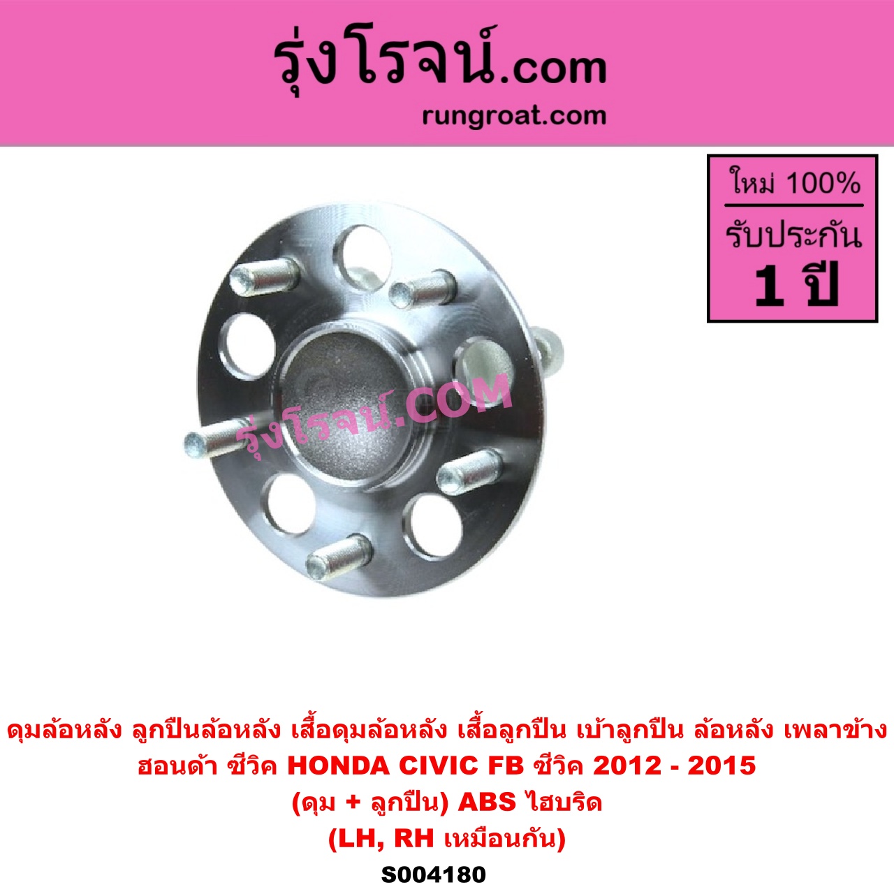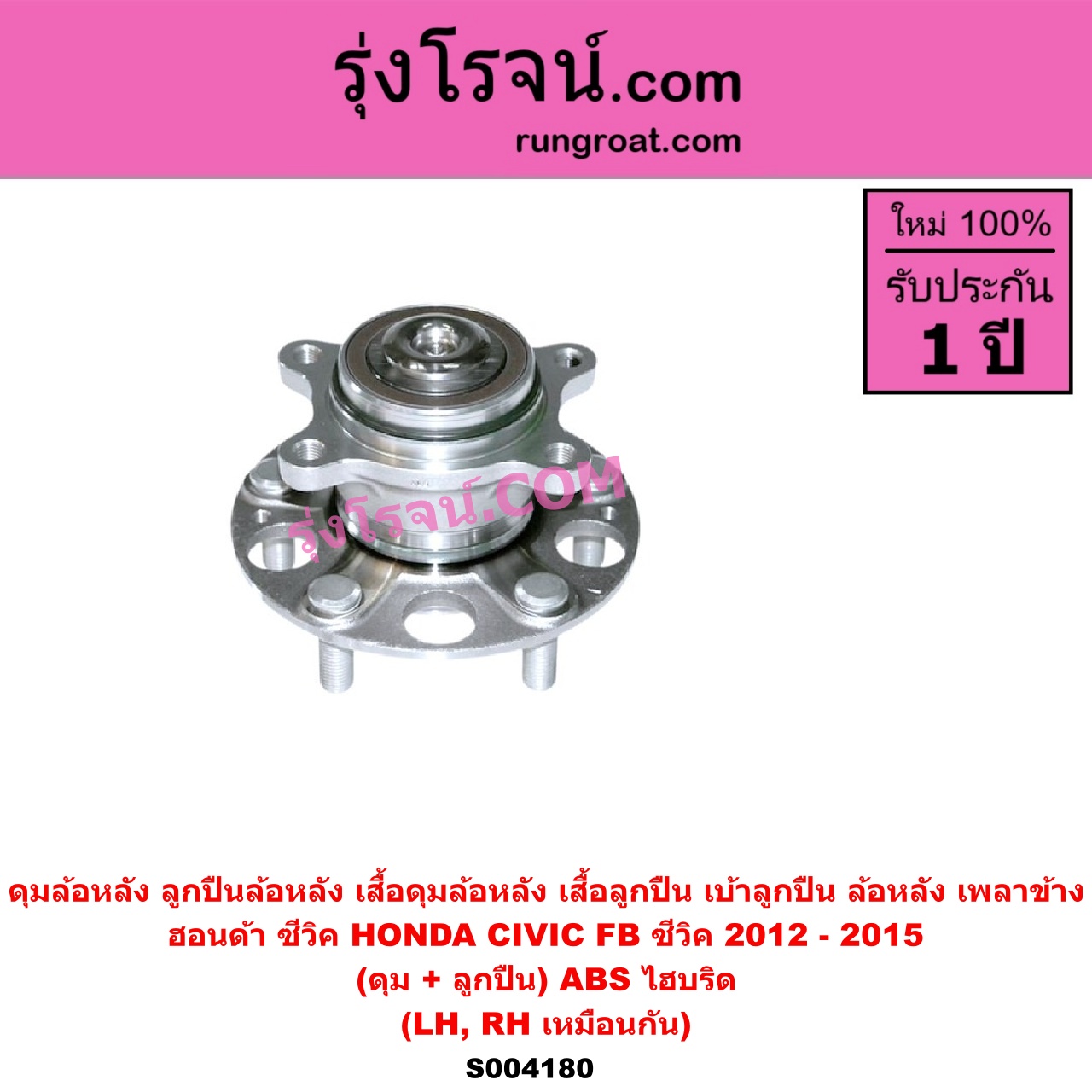 S004180 ดุมล้อหลัง ลูกปืนล้อหลัง เสื้อดุมล้อหลัง เสื้อลูกปืน เบ้าลูกปืน ล้อหลัง เพลาข้าง HONDA ฮอนด้า CIVIC ซีวิค 2012 – 2015 ไฮบริด FB ดุม + ลูกปืน ABS ไฮบริด LH RH