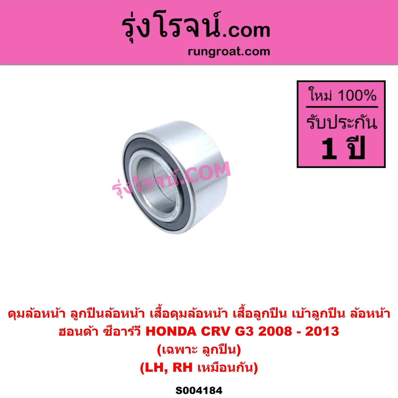 | S004184 | ดุมล้อหน้า (ลูกปืนล้อหน้า, เสื้อดุมล้อหน้า, เสื้อลูกปืน เบ้าลูกปืน ล้อหน้า) | HONDA (ฮอนด้า) / CRV (ซีอาร์วี 2008 – 2013) (G3) | (เฉพาะ ลูกปืน) LH, RH | ไต้หวัน (ใหม่) |