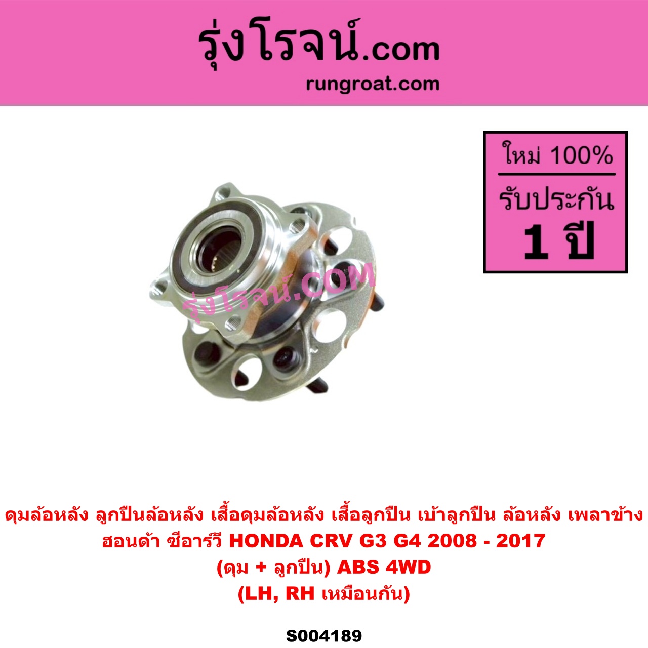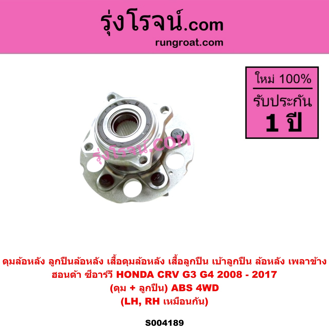 S004189 ดุมล้อหลัง (ลูกปืนล้อหลัง, เสื้อดุมล้อหลัง, เสื้อลูกปืน เบ้าลูกปืน ล้อหลัง เพลาข้าง) HONDA (ฮอนด้า) / CRV (ซีอาร์วี 2008 – 2013) (G3)