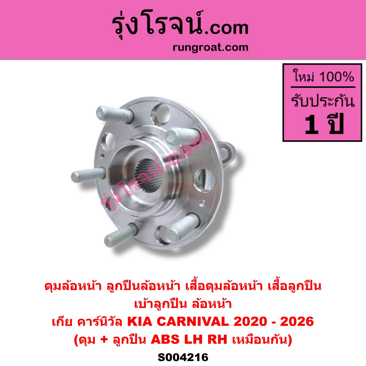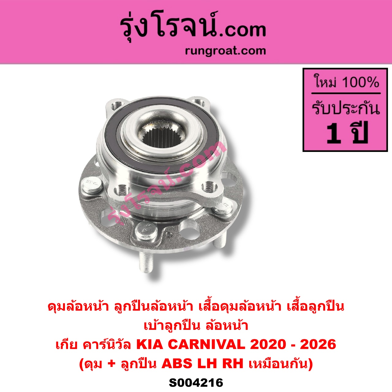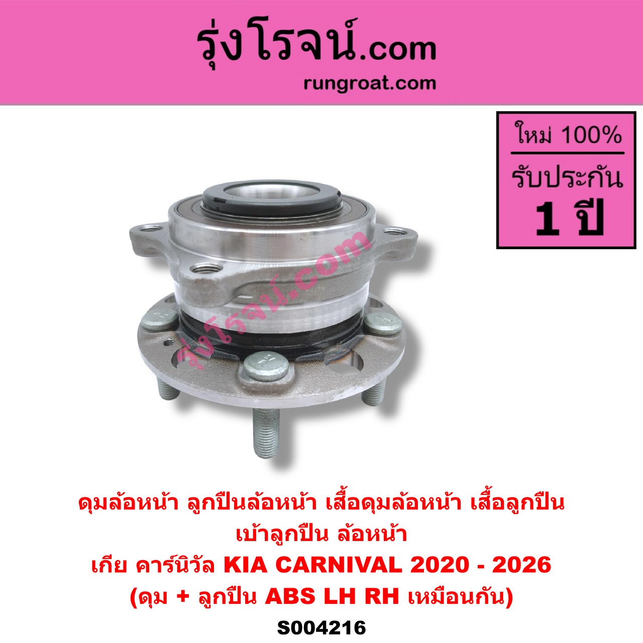 S004216 ดุมล้อหน้า ลูกปืนล้อหน้า เสื้อดุมล้อหน้า เสื้อลูกปืน เบ้าลูกปืน ล้อหน้า KIA เกีย CARNIVAL คาร์นิวัล 2020 – 2026 KA4 ดุม + ลูกปืน ABS LH RH