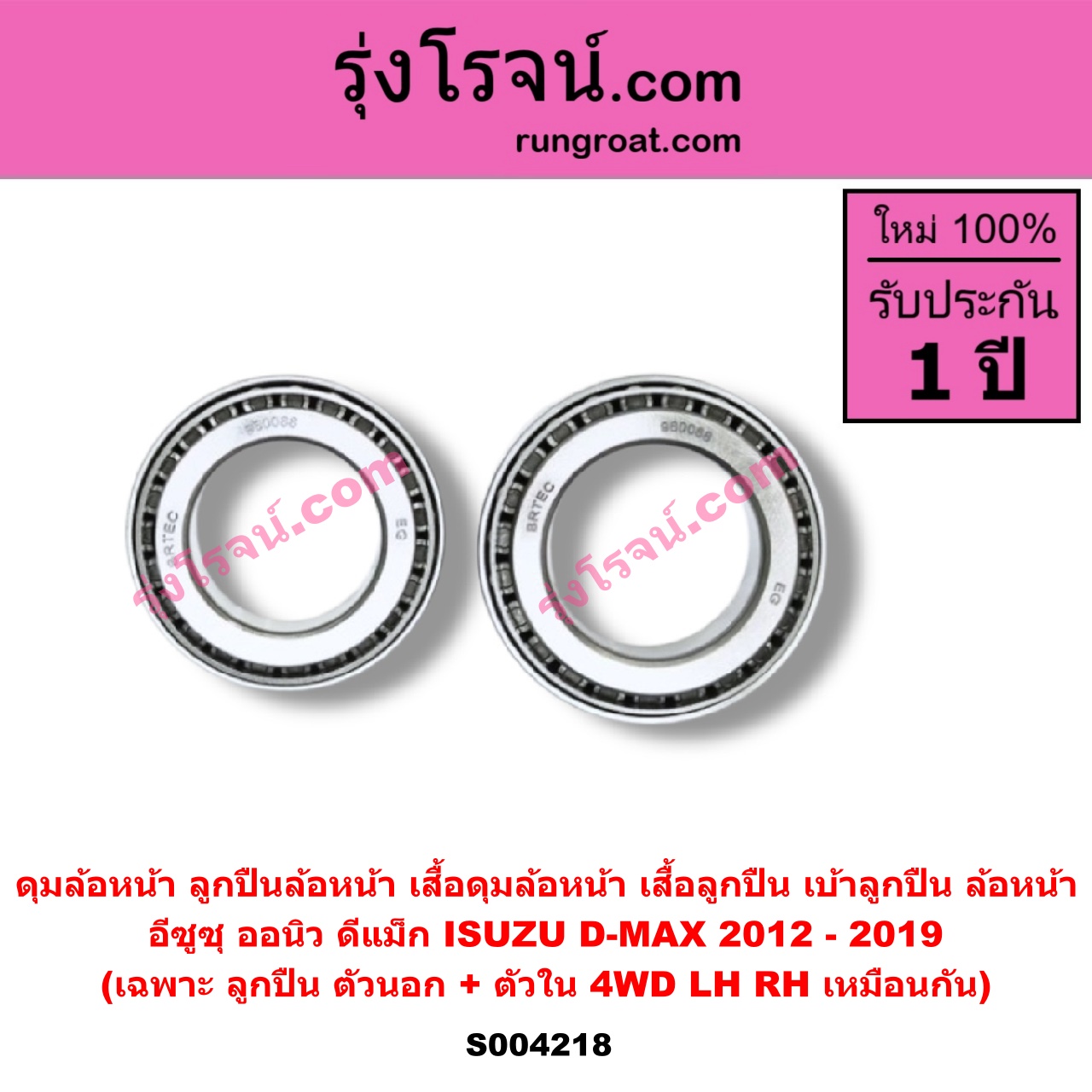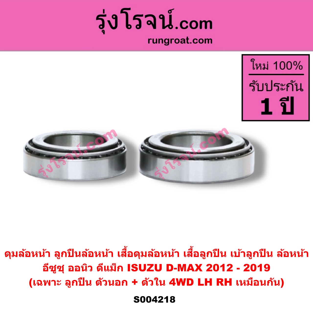| S004218 | ดุมล้อหน้า (ลูกปืนล้อหน้า, เสื้อดุมล้อหน้า, เสื้อลูกปืน เบ้าลูกปืน ล้อหน้า) | ISUZU (อีซูซุ) / D-MAX (ออนิว ออลนิว ดีแม็ก ดีแม็ค DMAX 2012 – 2019) (วีครอส V-CROSS / บลูเพาเวอร์ / 1.9) | (เฉพาะ ลูกปืน) (ตัวนอก + ตัวใน) 4WD LH, RH | ไต้หวัน (ใหม่) |
