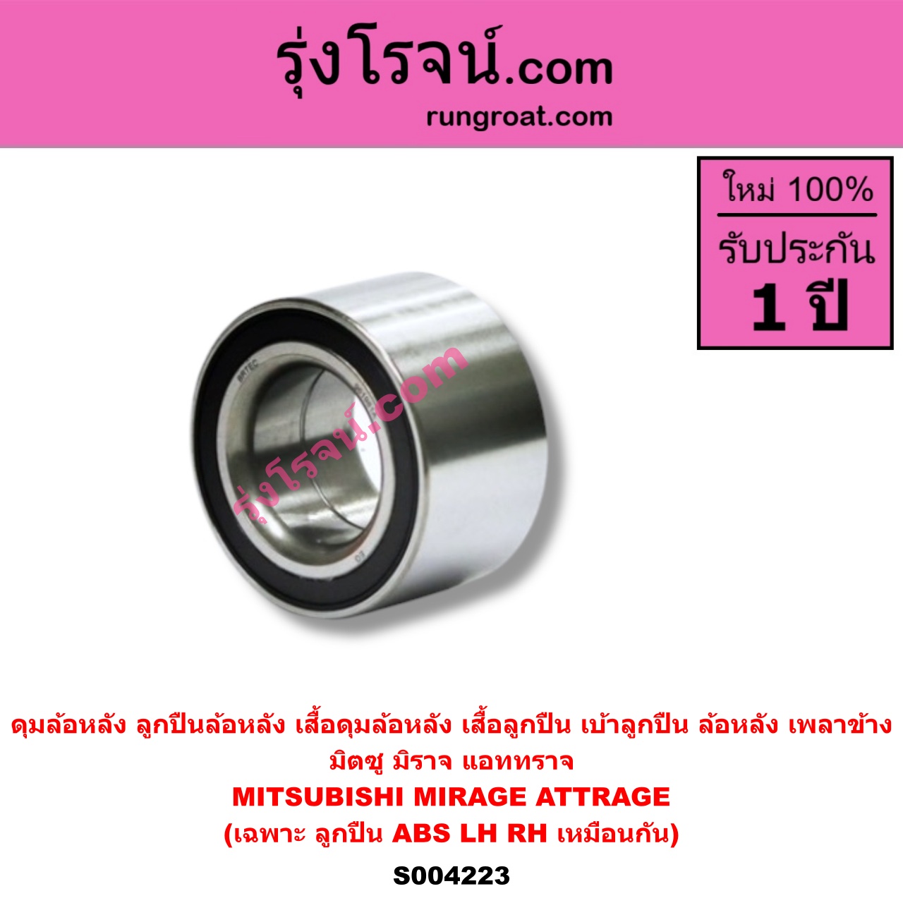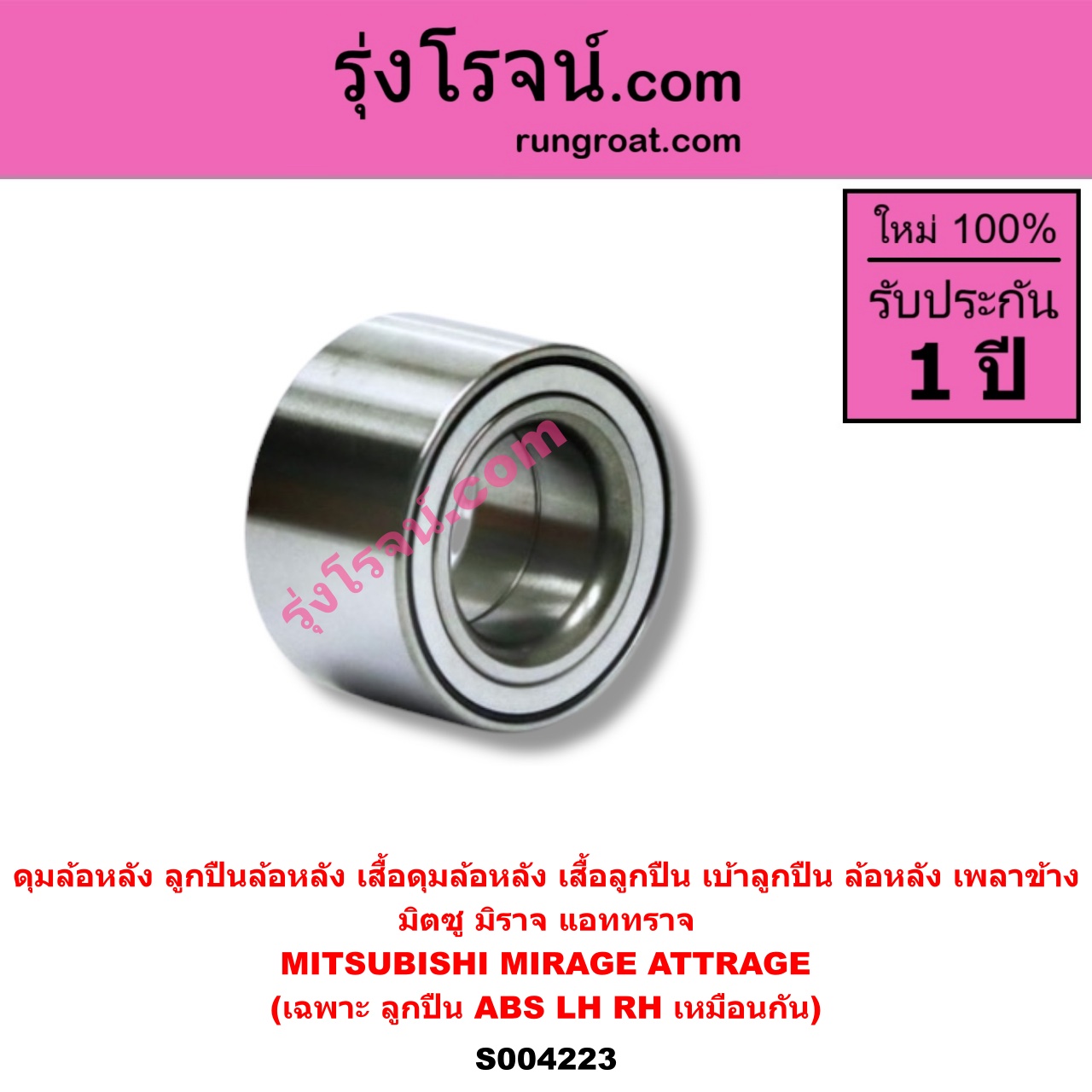 S004223 ดุมล้อหลัง ลูกปืนล้อหลัง เสื้อดุมล้อหลัง เสื้อลูกปืน เบ้าลูกปืน ล้อหลัง เพลาข้าง MITSUBISHI มิตซู ATTRAGE แอททราจ 2014 – 2023 MIRAGE มิราจ 2012 – 2023 เฉพาะ ลูกปืน ABS LH RH หน้าใช้เหมือน S004222