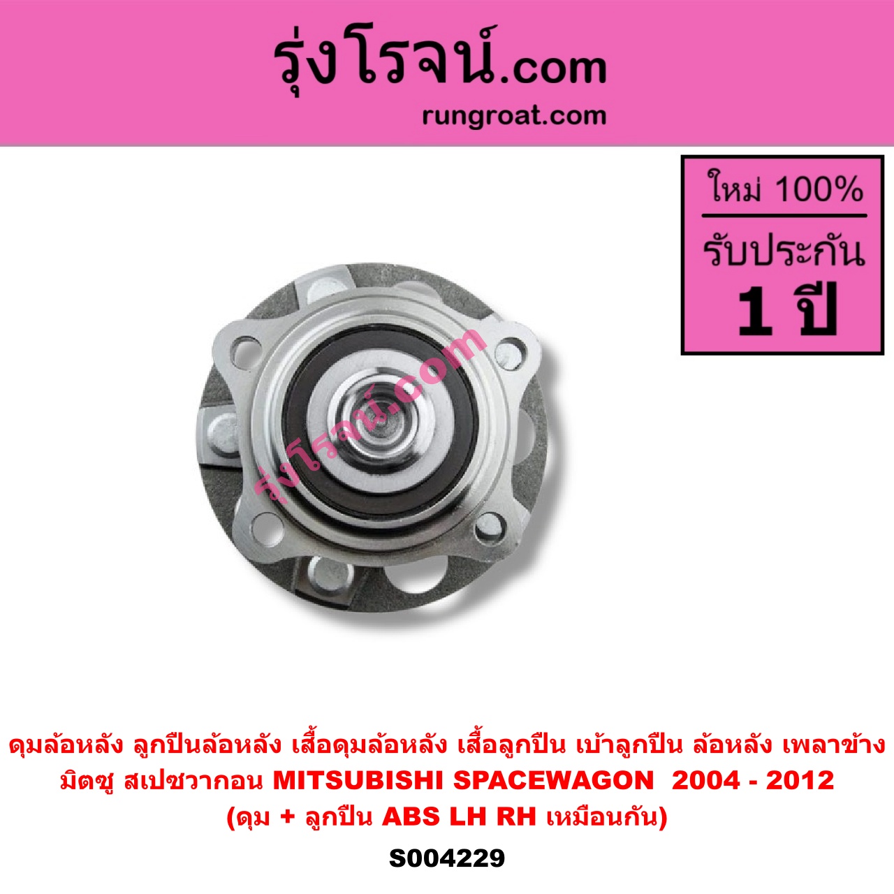| S004229 | ดุมล้อหลัง (ลูกปืนล้อหลัง, เสื้อดุมล้อหลัง, เสื้อลูกปืน เบ้าลูกปืน ล้อหลัง เพลาข้าง) | MITSUBISHI (มิตซู) / SPACEWAGON (สเปซวากอน 2004 – 2012) (รุ่น 2) | (ดุม + ลูกปืน) ABS LH, RH | ไต้หวัน (ใหม่) |
