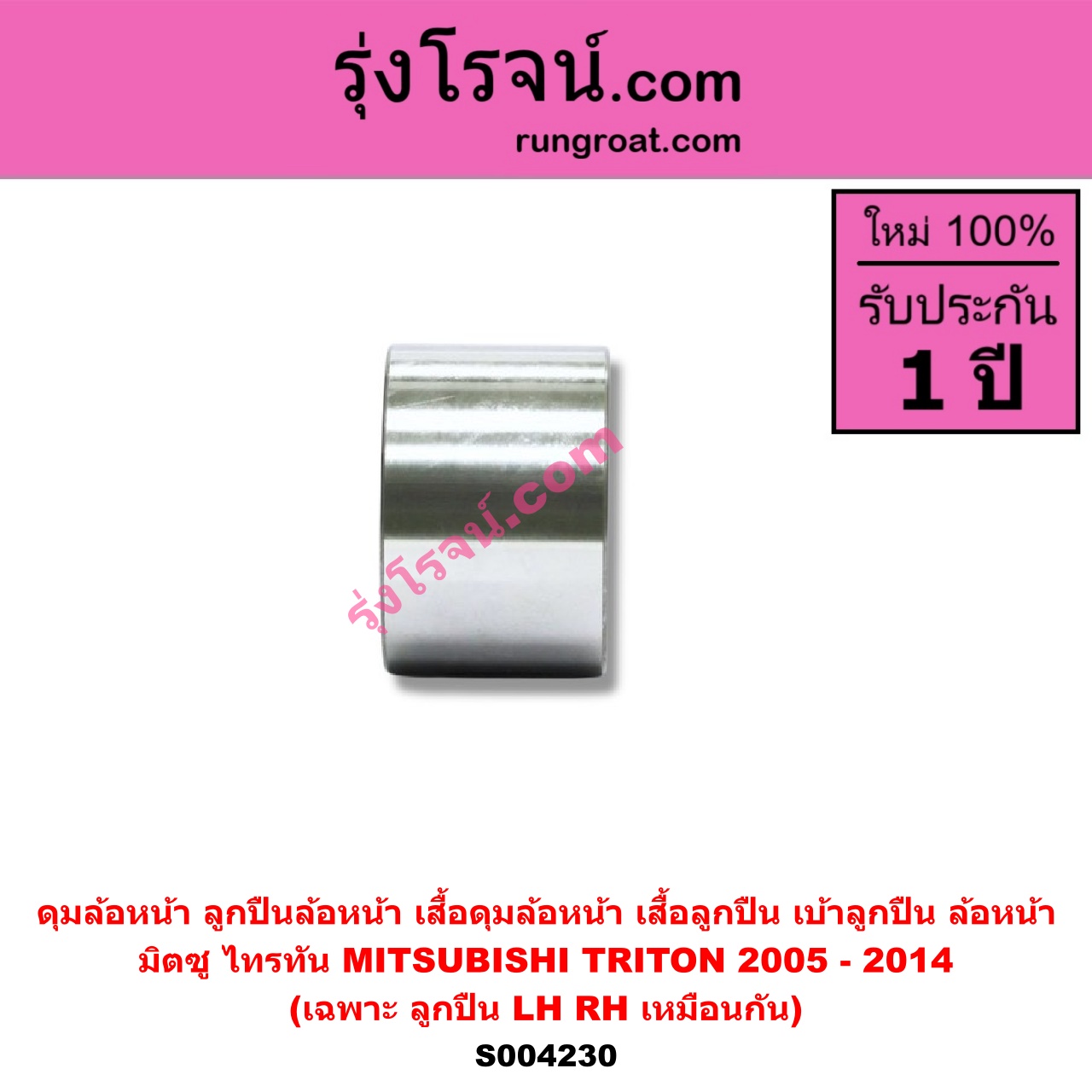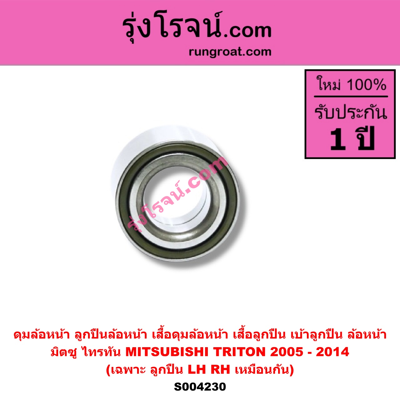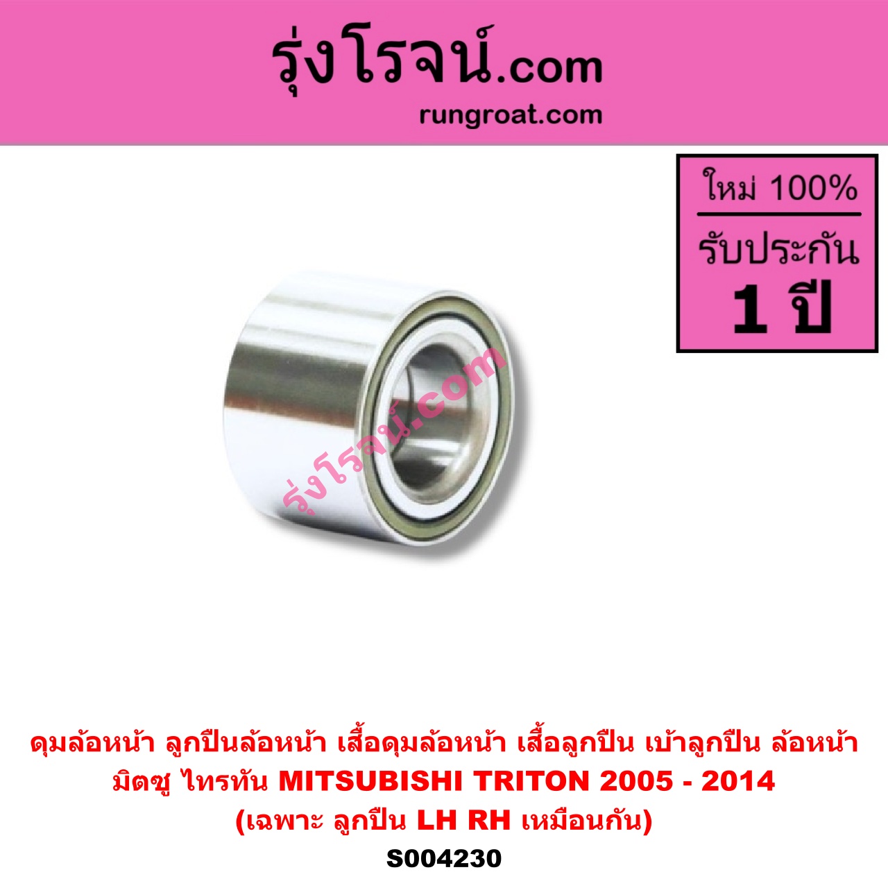 | S004230 | ดุมล้อหน้า (ลูกปืนล้อหน้า, เสื้อดุมล้อหน้า, เสื้อลูกปืน เบ้าลูกปืน ล้อหน้า) | MITSUBISHI (มิตซู) / TRITON (ไทรทัน ไตตั้น 2005 – 2014 PLUS) (รุ่นแรก) | (เฉพาะ ลูกปืน) LH, RH | ไต้หวัน (ใหม่) |