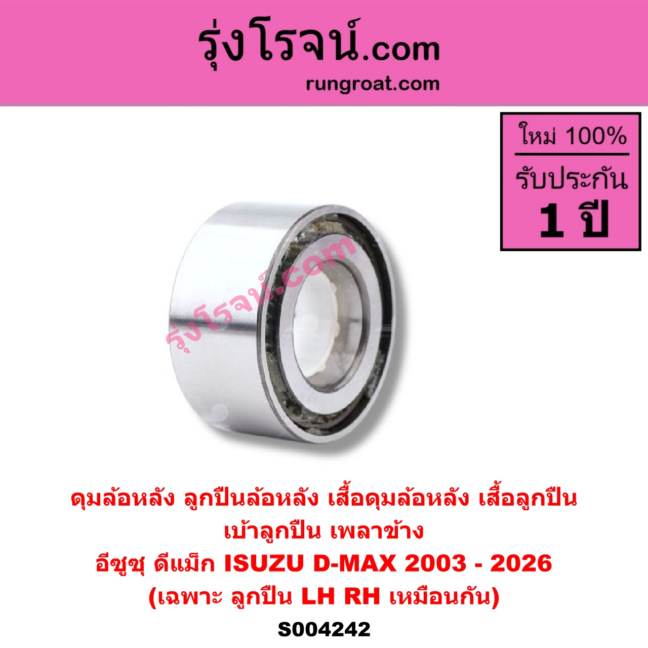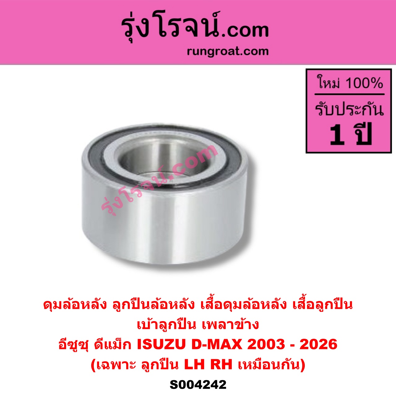| S004242 | ดุมล้อหลัง (ลูกปืนล้อหลัง, เสื้อดุมล้อหลัง, เสื้อลูกปืน เบ้าลูกปืน ล้อหลัง เพลาข้าง) | ISUZU (อีซูซุ) / D-MAX (ดีแม็ก ดีแม็ค DMAX 2003 – 2011) (รุ่นแรก) , ISUZU (อีซูซุ) / D-MAX (ดีแม็ก ดีแม็ค DMAX 2020 – 2026) (RG01 พลิกโลก) , ISUZU (อีซูซุ) / D-MAX (ออนิว ออลนิว ดีแม็ก ดีแม็ค DMAX 2012 – 2019) (วีครอส V-CROSS / บลูเพาเวอร์ / 1.9) |