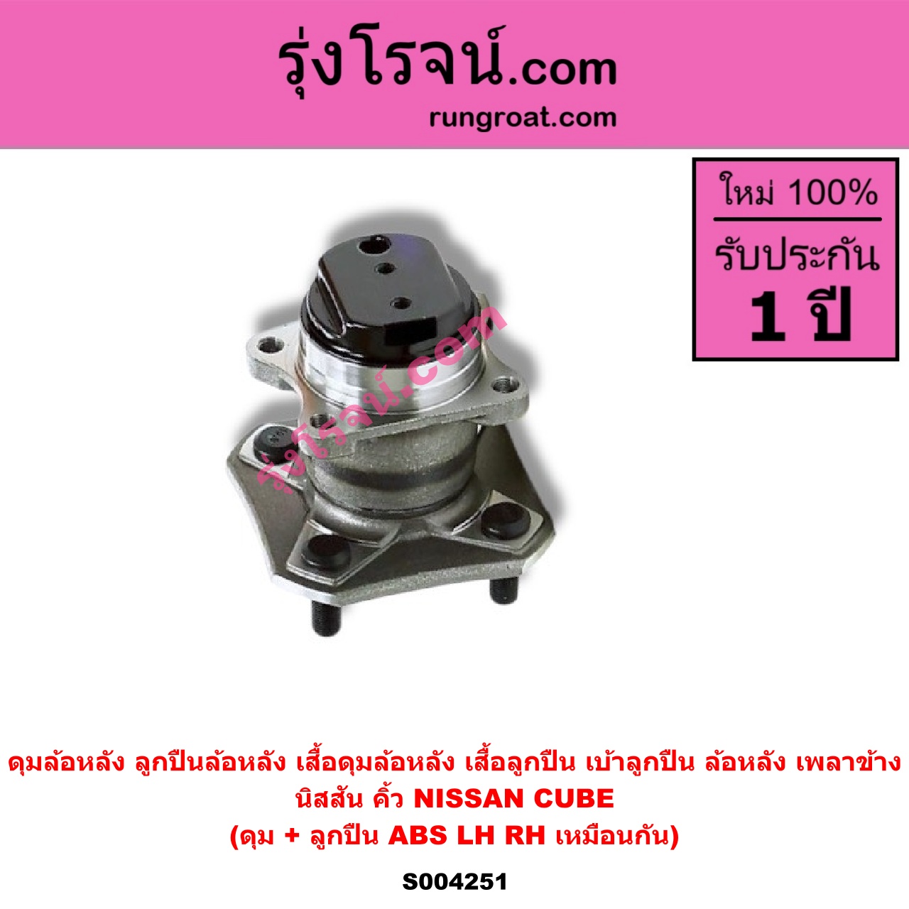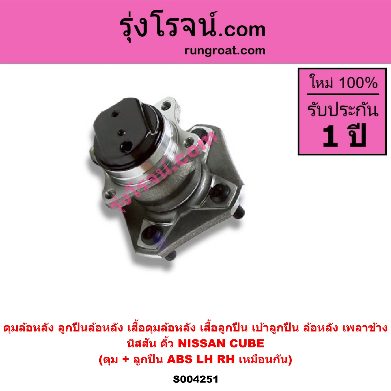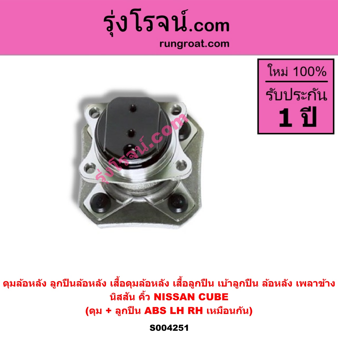 S004251 ดุมล้อหลัง ลูกปืนล้อหลัง เสื้อดุมล้อหลัง เสื้อลูกปืน เบ้าลูกปืน ล้อหลัง เพลาข้าง NISSAN นิสสัน CUBE คิ้ว 02 ดุม + ลูกปืน ABS LH RH
