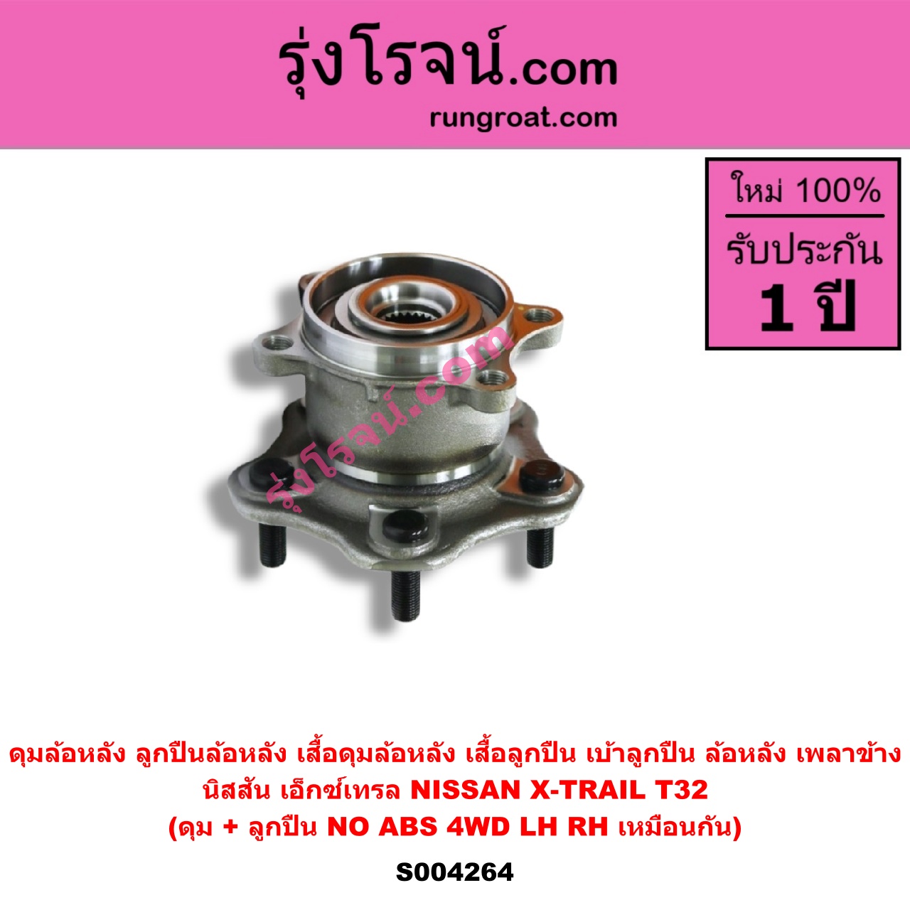 S004264 ดุมล้อหลัง (ลูกปืนล้อหลัง, เสื้อดุมล้อหลัง, เสื้อลูกปืน เบ้าลูกปืน ล้อหลัง เพลาข้าง) NISSAN (นิสสัน) / X-TRAIL (เอกเทรล เอ็กซ์เทรล T32) (รุ่น 2) (ดุม + ลูกปืน) (NO ABS) 4WD LH, RH ไต้หวัน (ใหม่)