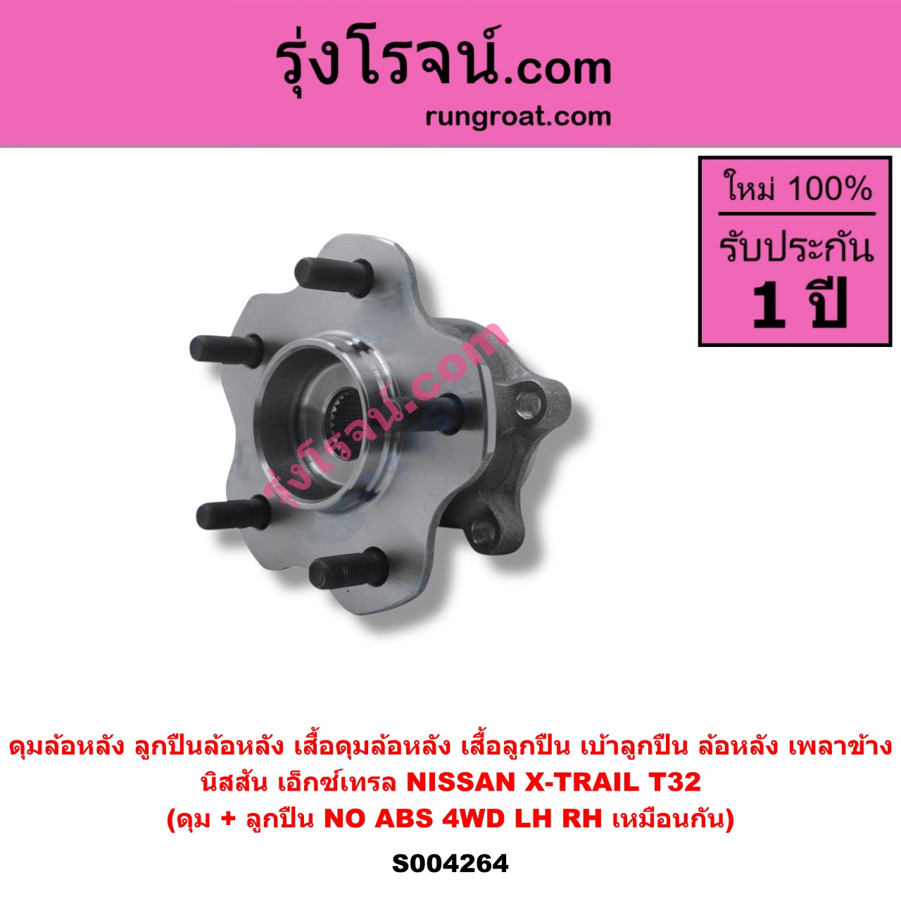 S004264 ดุมล้อหลัง ลูกปืนล้อหลัง เสื้อดุมล้อหลัง เสื้อลูกปืน เบ้าลูกปืน ล้อหลัง เพลาข้าง NISSAN นิสสัน X-TRAIL เอกเทรล เอ็กซ์เทรล T32 รุ่น 2 ดุม + ลูกปืน NO ABS 4WD LH RH