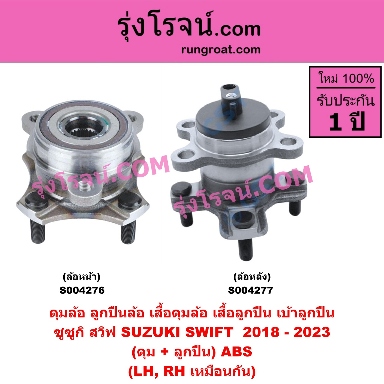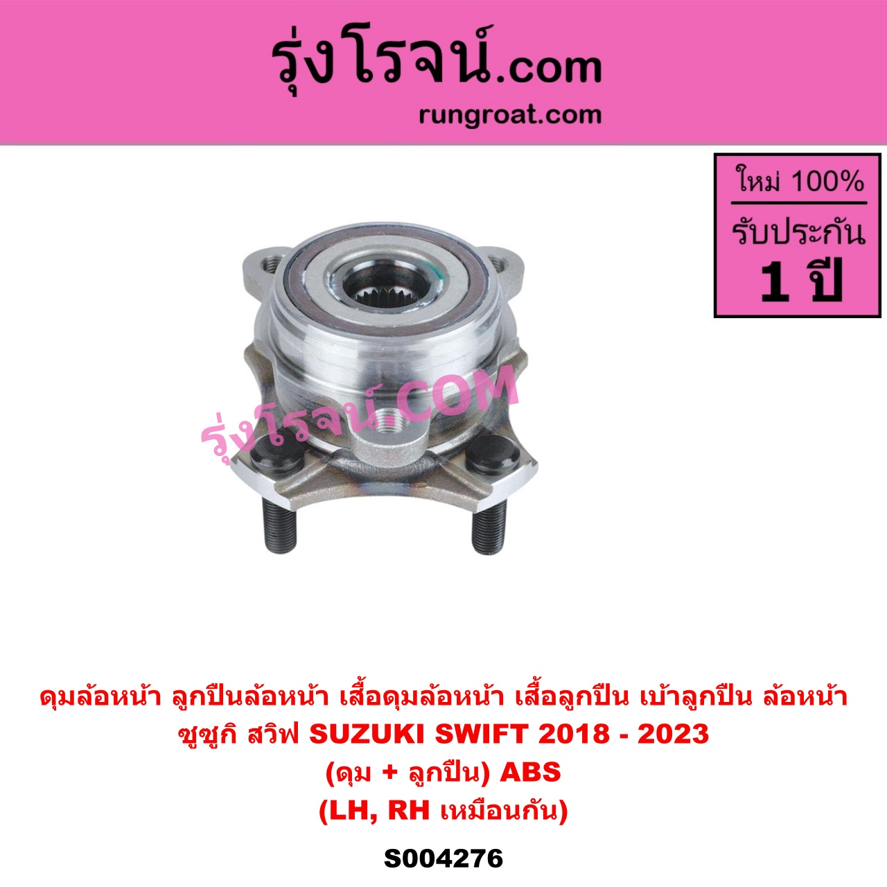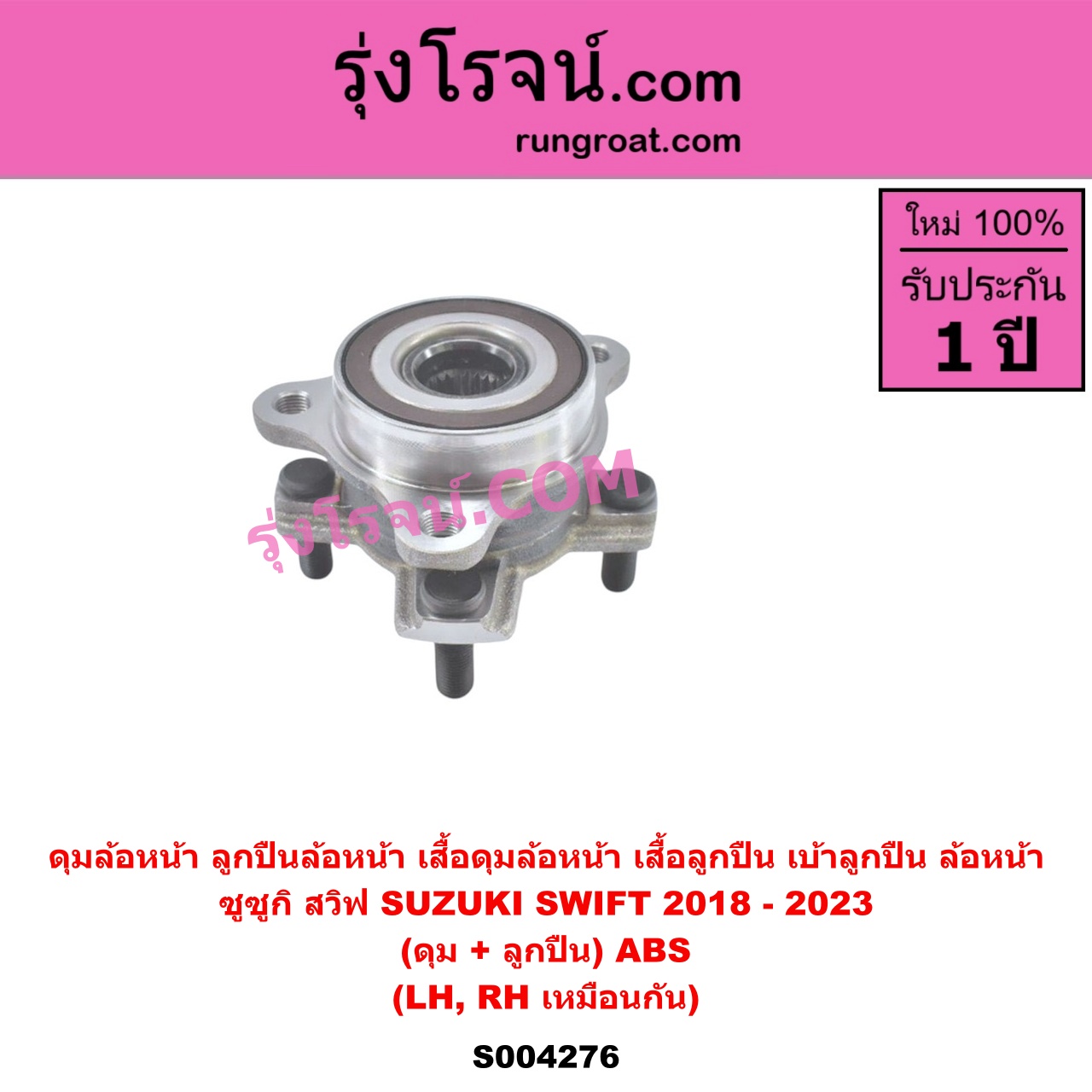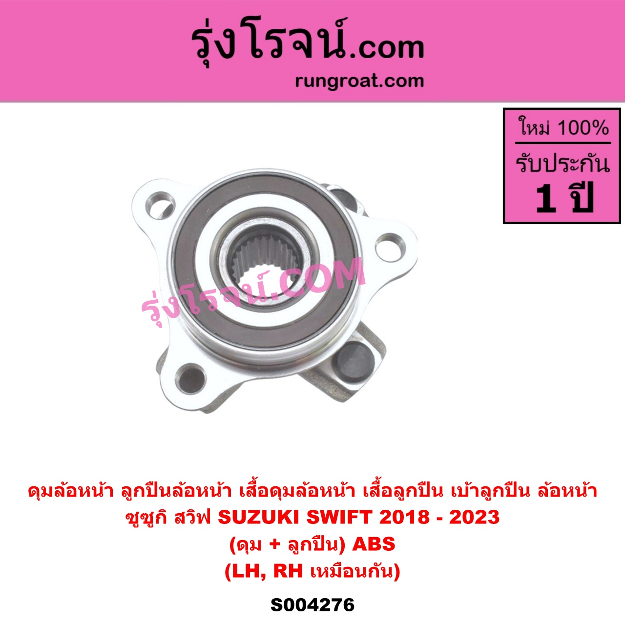 | S004276 | ดุมล้อหน้า (ลูกปืนล้อหน้า, เสื้อดุมล้อหน้า, เสื้อลูกปืน เบ้าลูกปืน ล้อหน้า) | SUZUKI (ซูซูกิ) / SWIFT (สวิฟ 2018 – 2023) (รุ่น 3) | (ดุม + ลูกปืน) ABS LH, RH | ไต้หวัน (ใหม่) |