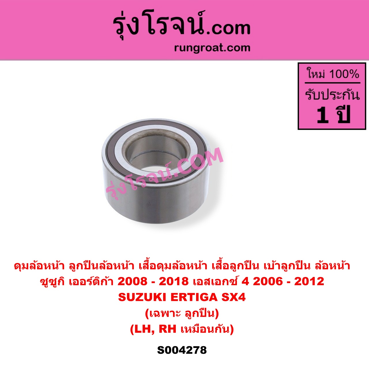 | S004278 | ดุมล้อหน้า (ลูกปืนล้อหน้า, เสื้อดุมล้อหน้า, เสื้อลูกปืน เบ้าลูกปืน ล้อหน้า) | SUZUKI (ซูซูกิ) / ERTIGA (เออร์ติก้า) (รุ่นแรก 2008 – 2018) , SUZUKI (ซูซูกิ) / SX4 (เอสเอกซ์ 4) (2006 – 2012) |