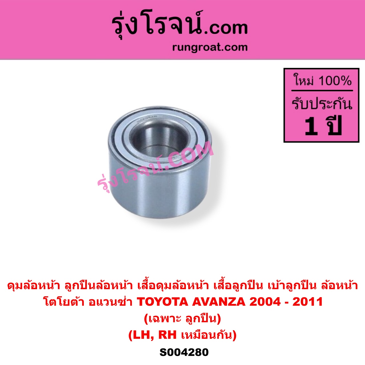 S004280 ดุมล้อหน้า (ลูกปืนล้อหน้า, เสื้อดุมล้อหน้า, เสื้อลูกปืน เบ้าลูกปืน ล้อหน้า) TOYOTA (โตโยต้า) / AVANZA (อแวนซ่า 2004 – 2011) (รุ่นแรก) (เฉพาะ ลูกปืน) LH, RH ไต้หวัน (ใหม่)