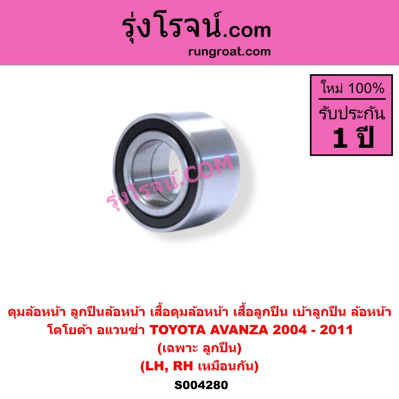 S004280 ดุมล้อหน้า ลูกปืนล้อหน้า เสื้อดุมล้อหน้า เสื้อลูกปืน เบ้าลูกปืน ล้อหน้า TOYOTA โตโยต้า AVANZA อแวนซ่า 2004 – 2011 รุ่นแรก เฉพาะ ลูกปืน LH RH