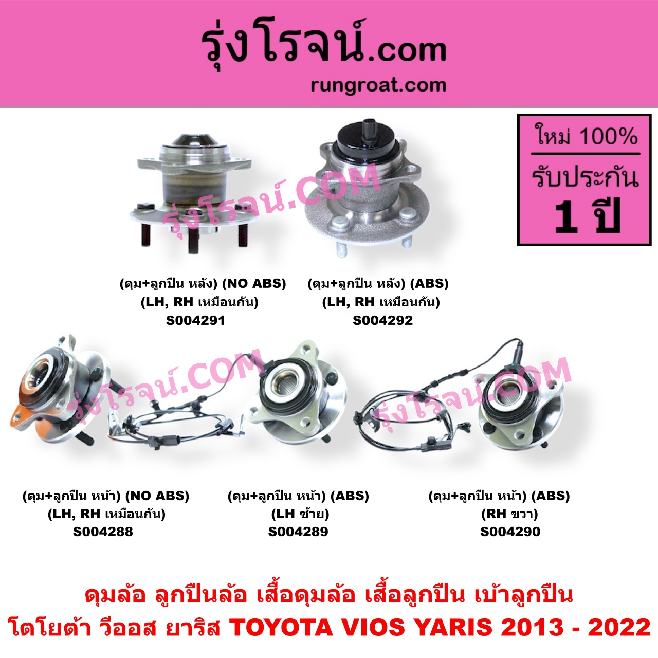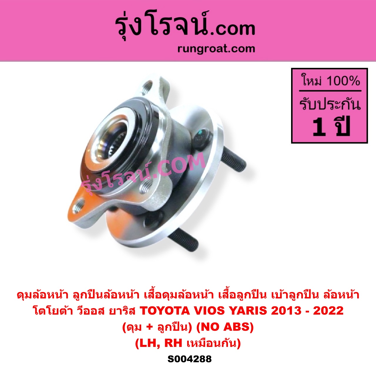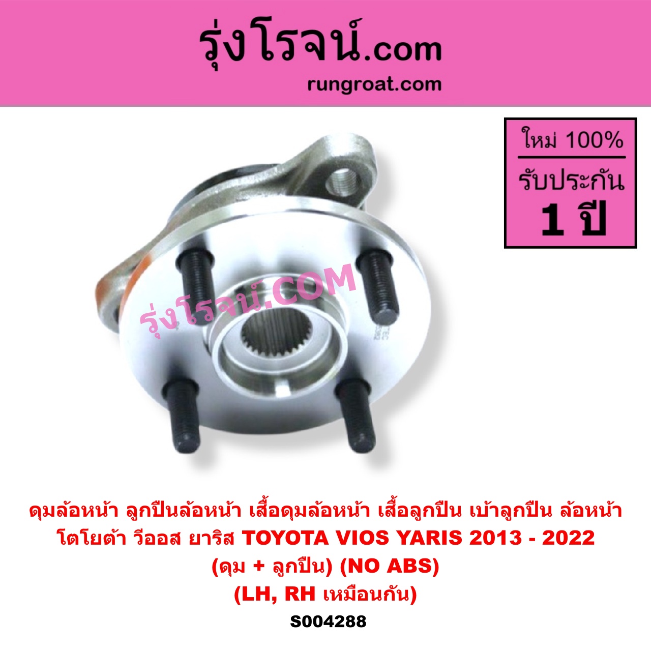 S004288 ดุมล้อหน้า ลูกปืนล้อหน้า เสื้อดุมล้อหน้า เสื้อลูกปืน เบ้าลูกปืน ล้อหน้า TOYOTA โตโยต้า VIOS วีออส 2013 – 2021 รุ่น 3 YARIS ยาริส 2013 – 2022 ATIV รุ่น 2 XP150 ดุม + ลูกปืน NO ABS LH RH