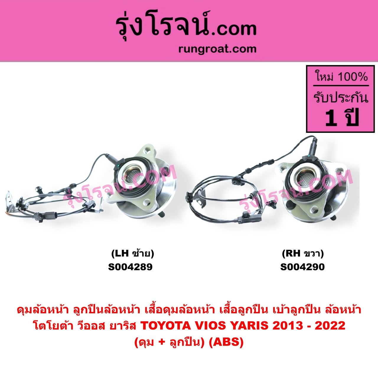 | S004289 | ดุมล้อหน้า (ลูกปืนล้อหน้า, เสื้อดุมล้อหน้า, เสื้อลูกปืน เบ้าลูกปืน ล้อหน้า) | TOYOTA (โตโยต้า) / VIOS (วีออส 2013 – 2021) (รุ่น 3) , TOYOTA (โตโยต้า) / YARIS (ยาริส 2013 – 2022) (ATIV, รุ่น 2) (XP150) |