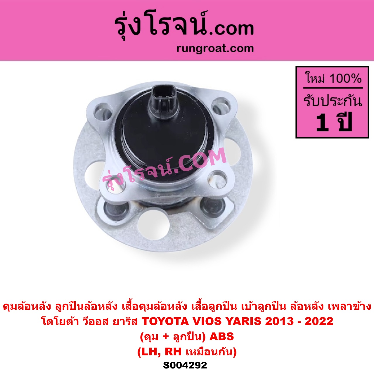 | S004292 | ดุมล้อหลัง (ลูกปืนล้อหลัง, เสื้อดุมล้อหลัง, เสื้อลูกปืน เบ้าลูกปืน ล้อหลัง เพลาข้าง) | TOYOTA (โตโยต้า) / VIOS (วีออส 2013 – 2021) (รุ่น 3) , TOYOTA (โตโยต้า) / YARIS (ยาริส 2013 – 2022) (ATIV, รุ่น 2) (XP150) |