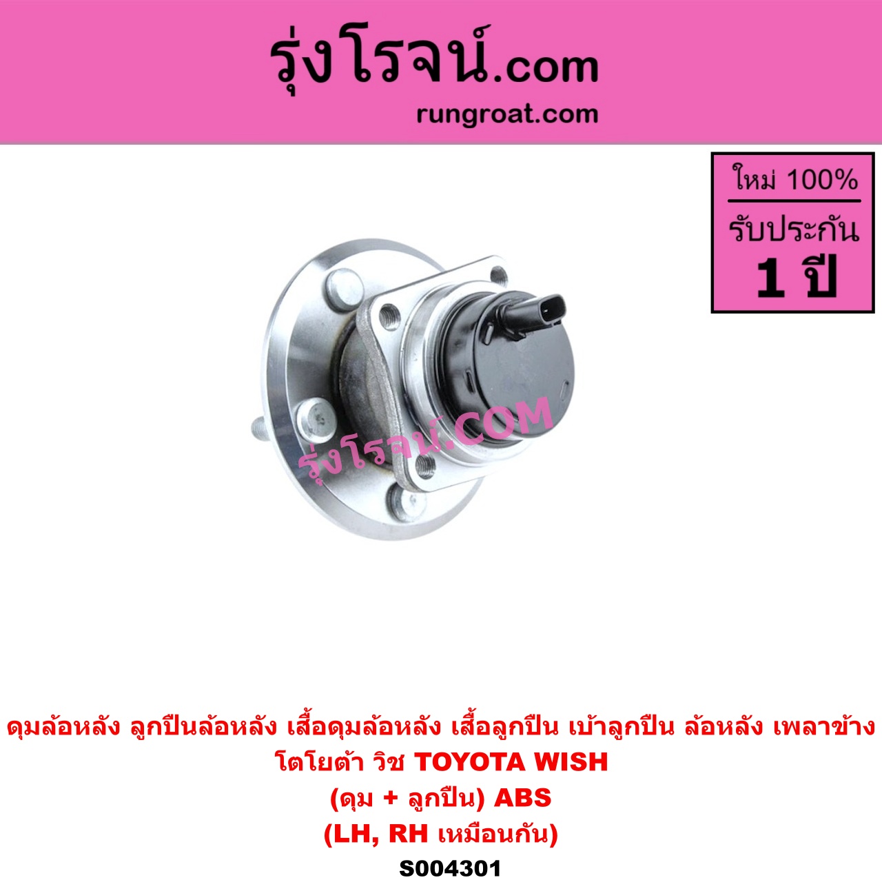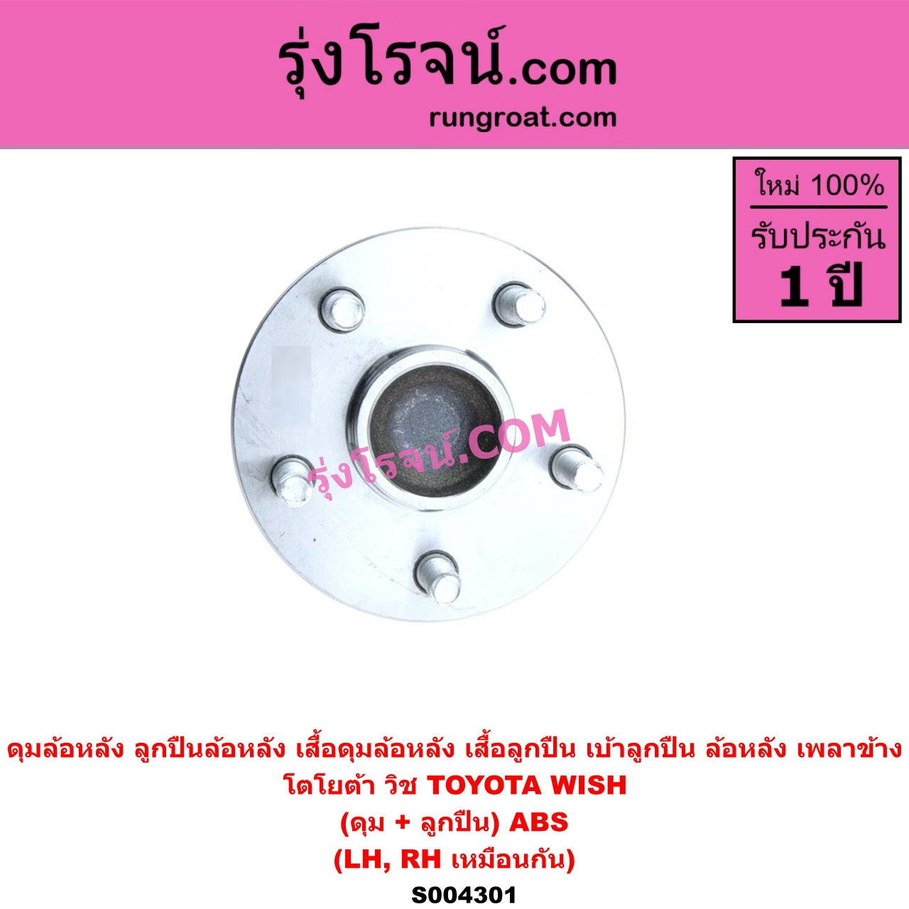S004301 ดุมล้อหลัง ลูกปืนล้อหลัง เสื้อดุมล้อหลัง เสื้อลูกปืน เบ้าลูกปืน ล้อหลัง เพลาข้าง TOYOTA โตโยต้า WISH วิช 2003 – 2010 ดุม + ลูกปืน ABS LH RH