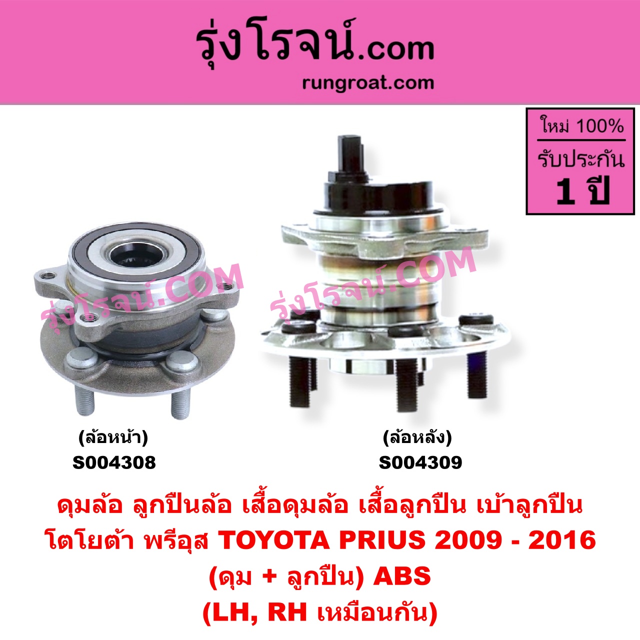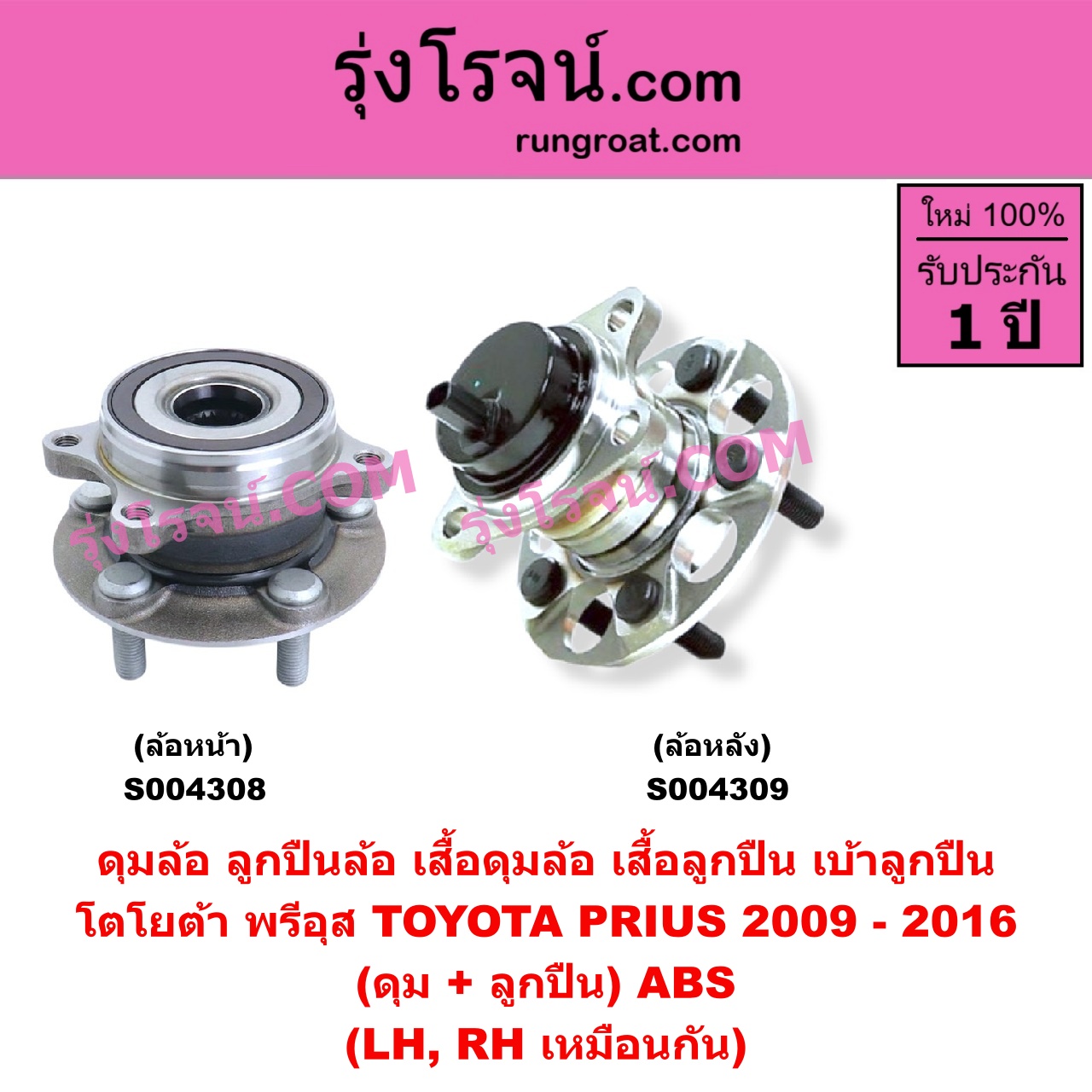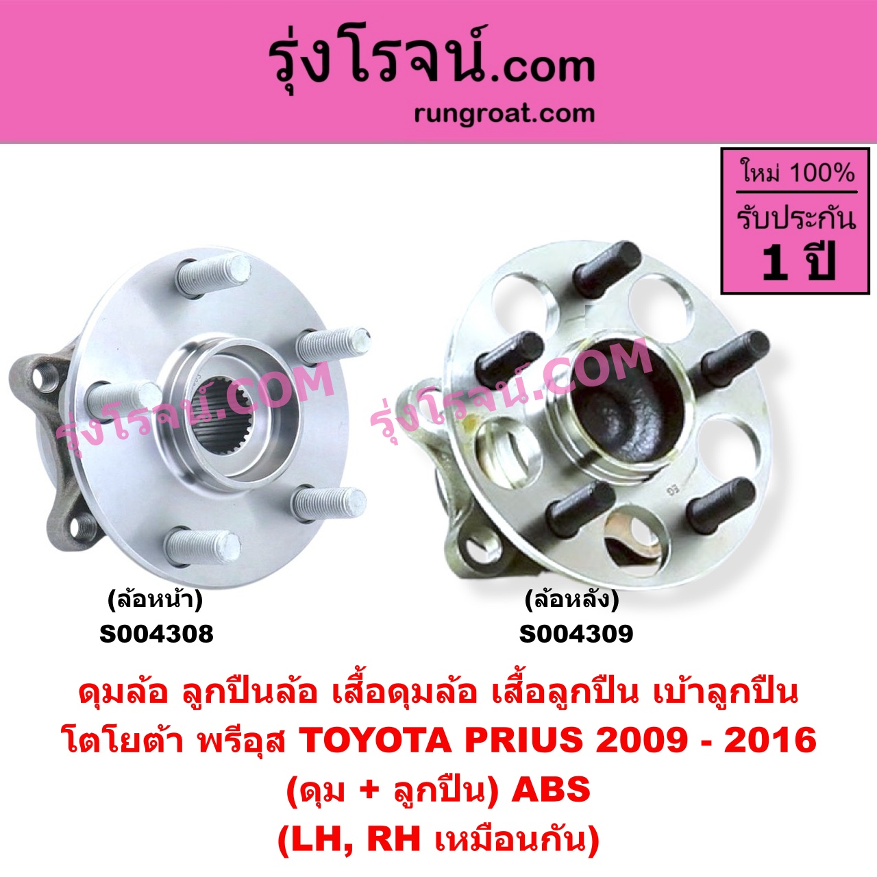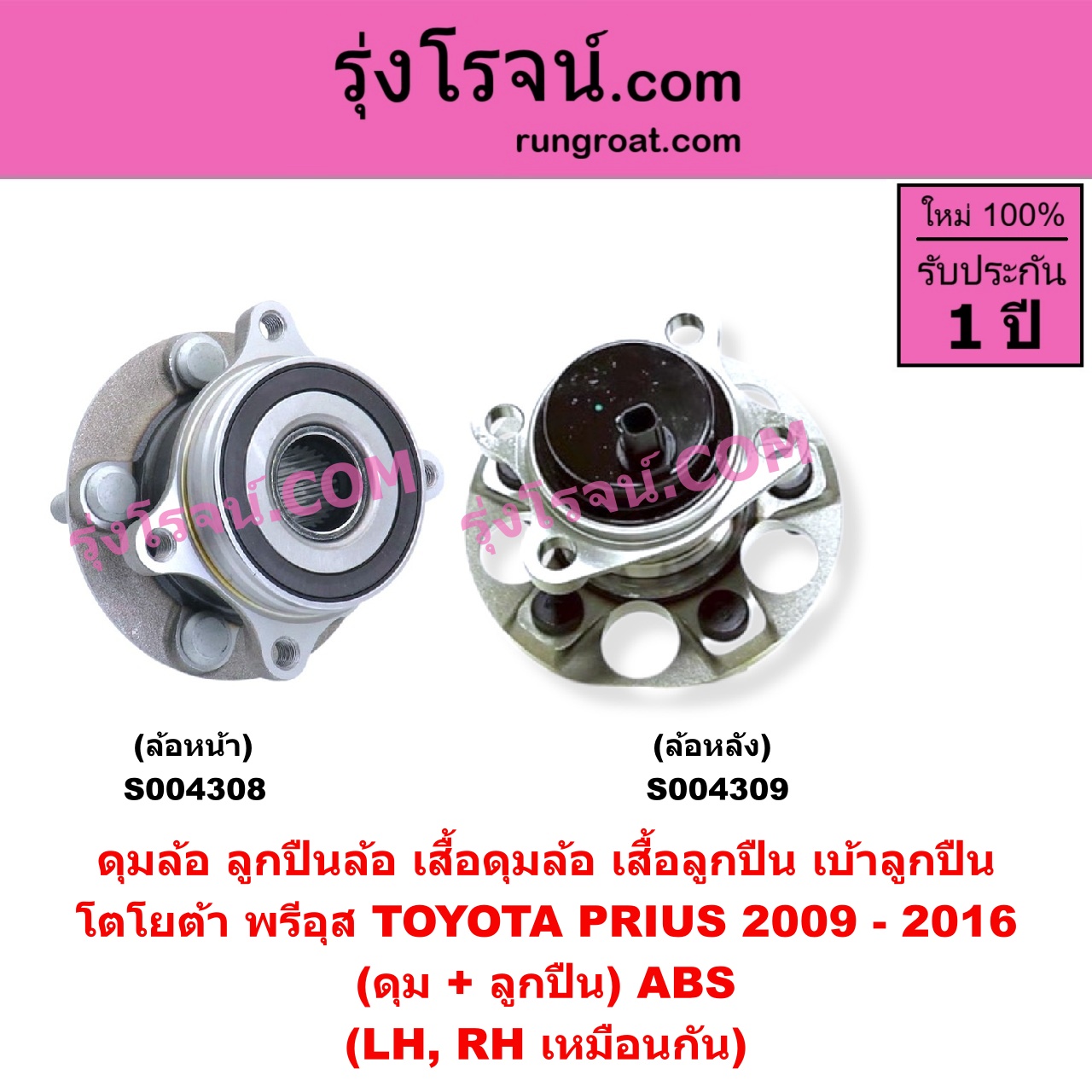 | S004309 | ดุมล้อหลัง (ลูกปืนล้อหลัง, เสื้อดุมล้อหลัง, เสื้อลูกปืน เบ้าลูกปืน ล้อหลัง เพลาข้าง) | TOYOTA (โตโยต้า) / PRIUS (พรีอุส 2009 – 2016) | (ดุม + ลูกปืน) ABS LH, RH | ไต้หวัน (ใหม่) |