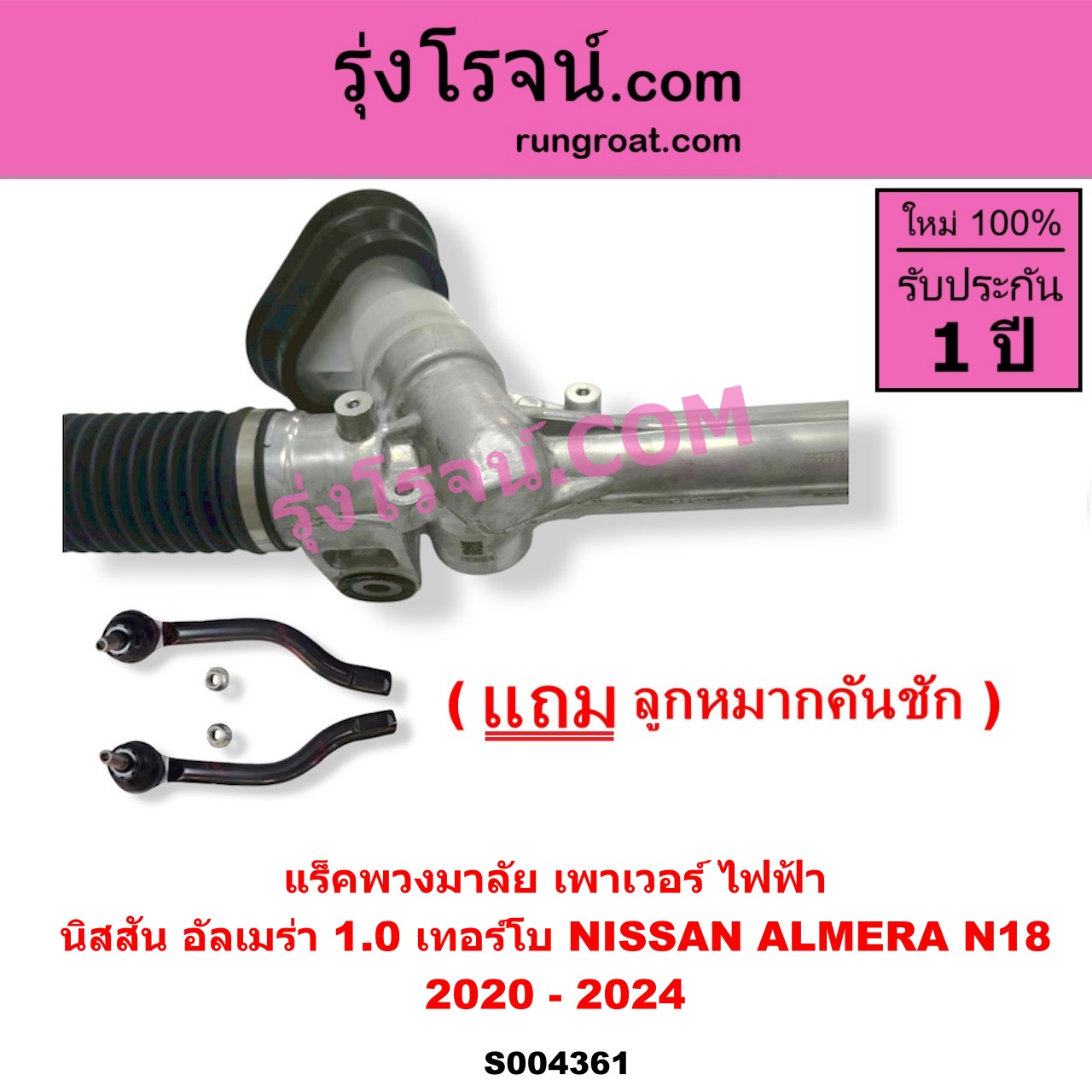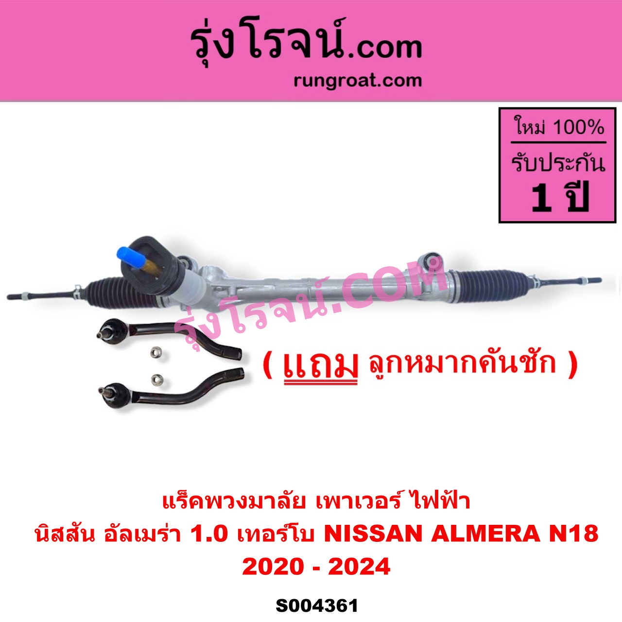 | S004361 | แร็คพวงมาลัย (แร็คเพาเวอร์) | NISSAN (นิสสัน) / ALMERA (อัลเมร่า N18 2020 – 2024) (เครื่อง 1.0 เทอร์โบ) | ไฟฟ้า | ไต้หวัน (ใหม่) |
